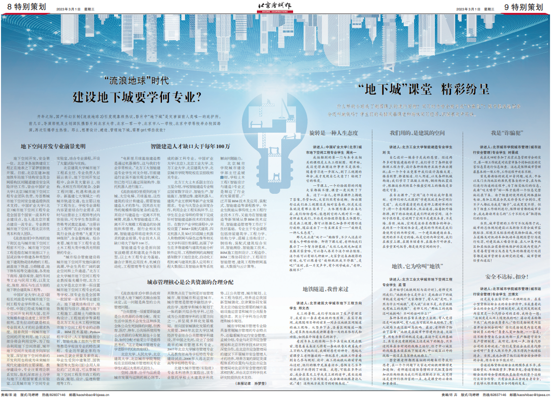 开年之际,国产科幻巨制《流浪地球2》引发现象级热议,影片中“地下城”是灾害面前人类唯一的庇护所。前几日,导演郭帆及主创团队携影片到北京大学、北京一零一中、北京市八一学校、北京中学等校举办校园路演,再次引爆学生热情。那么,想要设计、建造、管理地下城,需要get哪些技能?
