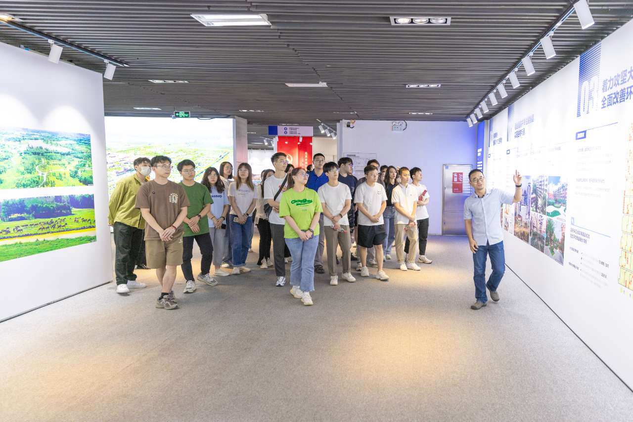 本次活动邀请专业教师和思政教师联袂开讲。学子们首先参观了《迈向中华民族伟大复兴的大国首都—— <北京城市总体规划(2016——2035年)> 实施成果展》。结合展览内容,北建大建筑学院教授丁奇在现场开讲。他分析了新一版北京城市总体规划的鲜明特点,介绍了学校助力总 规落地,在推进北京城市更新治理、城市更新精细化设计、历史文化传承保护等领域所做的贡献,包括牵头编制《北京市城市设计管理办法》,承担中轴线风貌评估和故宫、鼓楼、什刹海等中轴线重点街区保护与更新项目,牵头开展“小空间 大生活——百姓身边微空间改造行动计划”等多个重大项目。