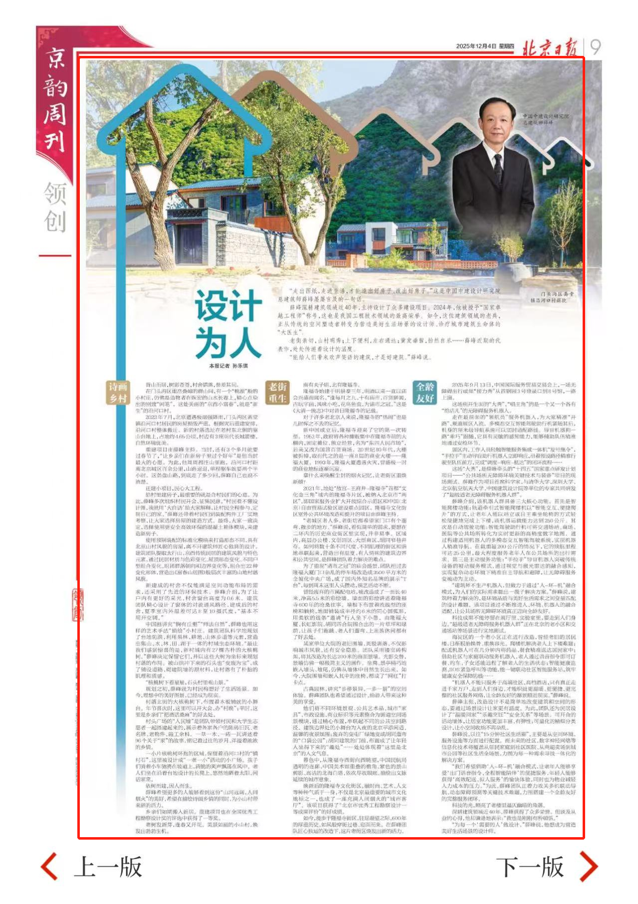 “走出图纸,走进生活,才能造出好房子、改出好房子。”这是中国中建设计研究院总建筑师薛峰屡屡言及的一句话。