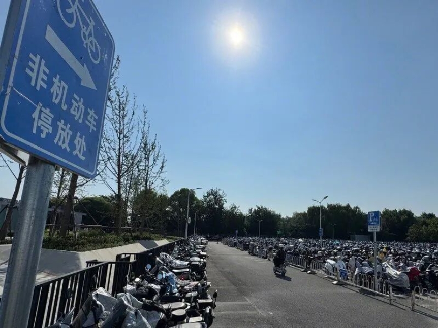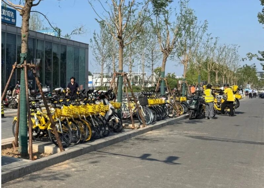 潞城地铁站外可停5千辆车的非机动车停放区/记者此前拍摄