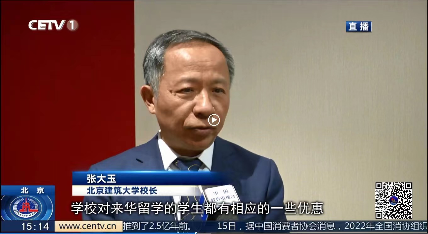 图说:2023年2月16日,“新起点 新发展”为主题的“一带一路”教育国际交流研讨会在京举办,BETVLCTOR伟德在线校长张大玉接受采访介绍学校对来华留学生优惠政策。