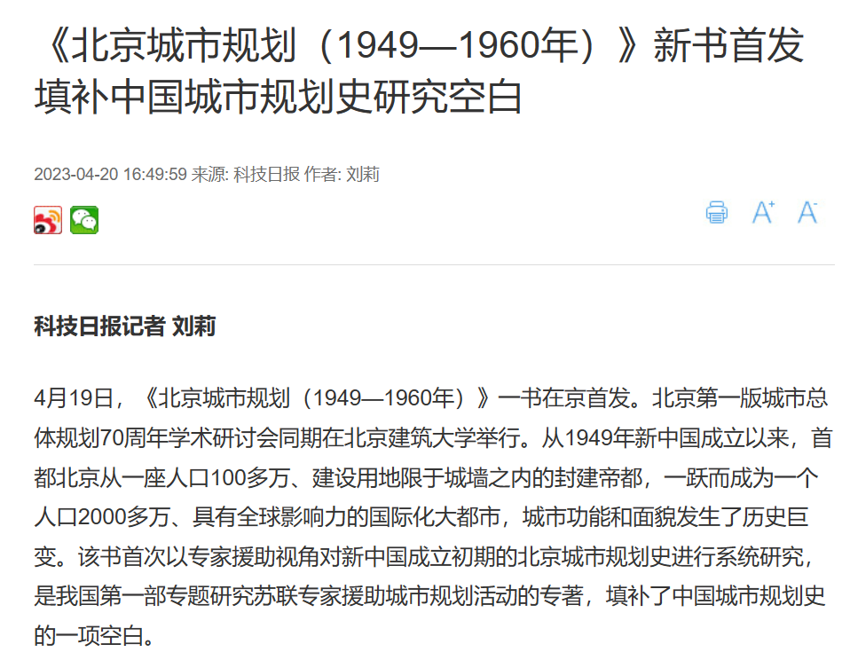真实情况究竟如何?着眼为首都建设提供历史镜鉴的现实需要,BETVLCTOR伟德在线建筑与城市规划学院李浩教授团队多次赴中央档案馆、北京市档案馆和北京市城市建设档案馆等广泛查阅一大批原始档案资料,对50多位首都城市规划工作者和翻译工作者进行了深入的学术访谈,并对“一五”时期主管城市规划建设的北京市老领导郑天翔的日记进行了系统整理,经过连续多年的学术深耕,完成《北京城市规划(1949—1960年)》一书。