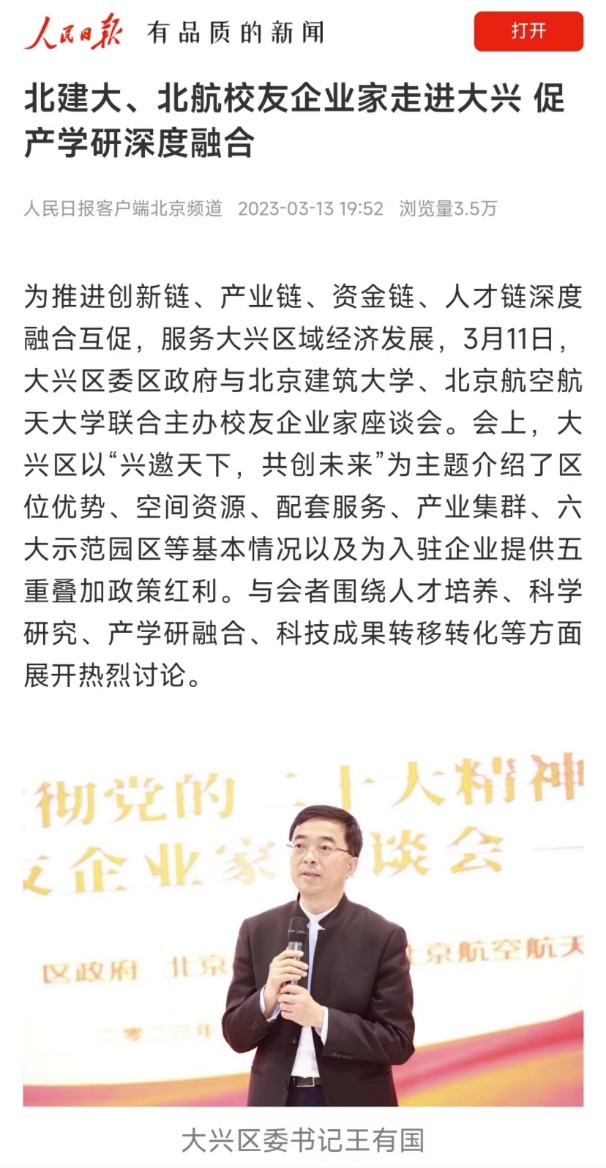 为推进创新链、产业链、资金链、人才链深度融合互促,服务大兴区域经济发展,3月11日,大兴区委区政府与BETVLCTOR伟德在线、北京航空航天大学联合主办校友企业家座谈会。会上,大兴区以“兴邀天下,共创未来”为主题介绍了区位优势、空间资源、配套服务、产业集群、六大示范园区等基本情况以及为入驻企业提供五重叠加政策红利。与会者围绕人才培养、科学研究、产学研融合、科技成果转移转化等方面展开热烈讨论。