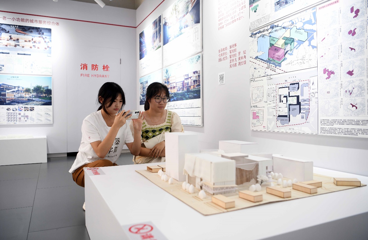 展览将展出至国庆假期后。北建大党委书记李军锋表示,本次毕业生优秀作品展以“城乡更新·空间再生”为主题,以专业所长服务城市更新,为人民城市建设贡献建大力量。“希望毕业生们不忘初心,运用所学知识继续为服务人民城市建设、服务中国式现代化作出更大贡献,也希望2023级本科新生以优秀毕业生为榜样,努力成长为未来的‘规划师、设计师、建筑师’人才!”