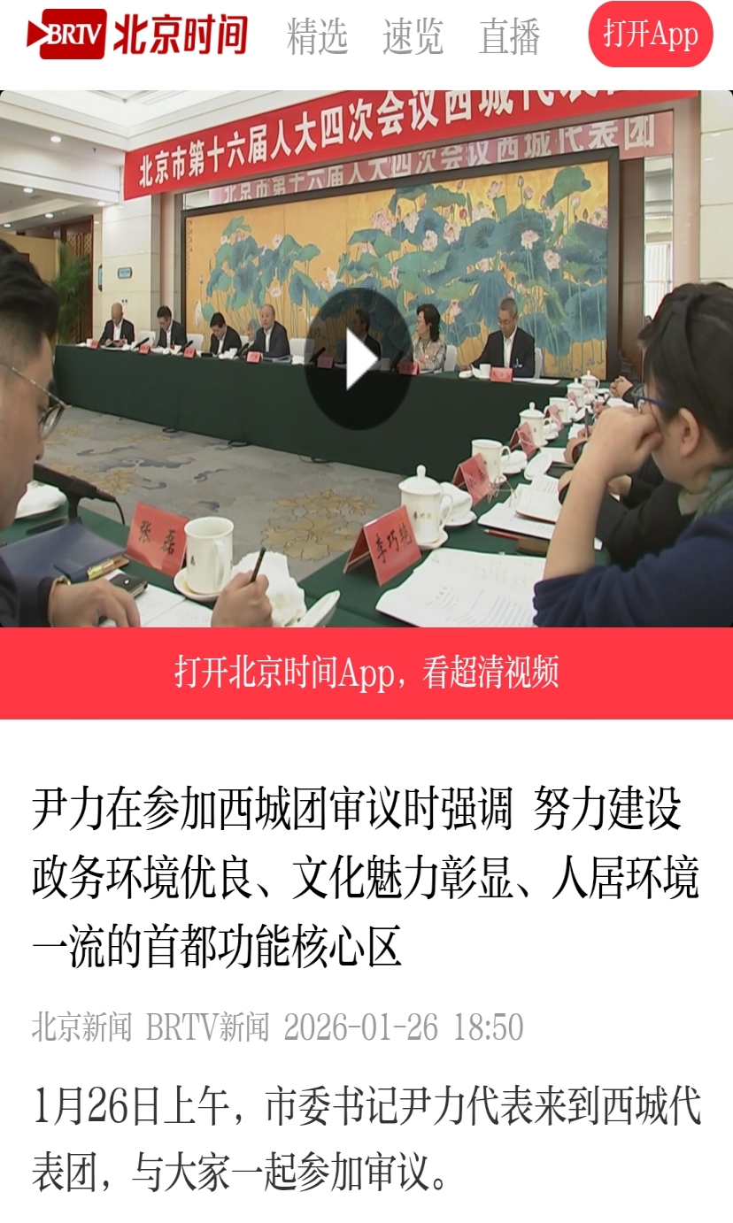 尹力在参加西城团审议时强调:努力建设政务环境优良、文化魅力彰显、人居环境一流的首都功能核心区。秦红岭在会上作专题发言。