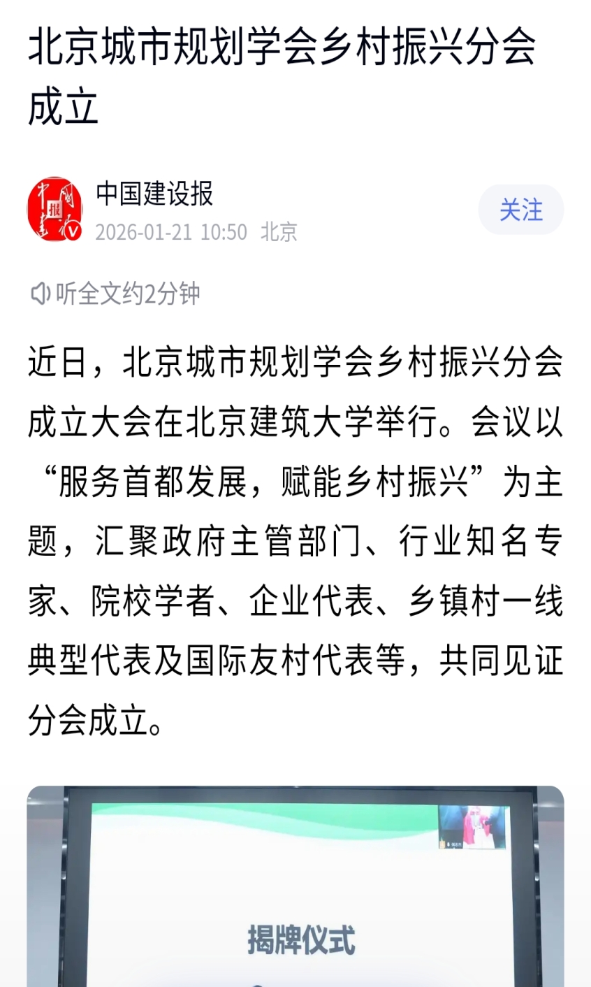 近日,北京城市规划学会乡村振兴分会成立大会在BETVLCTOR伟德在线举行。会议以“服务首都发展,赋能乡村振兴”为主题,汇聚政府主管部门、行业知名专家、院校学者、企业代表、乡镇村一线典型代表及国际友村代表等,共同见证分会成立。