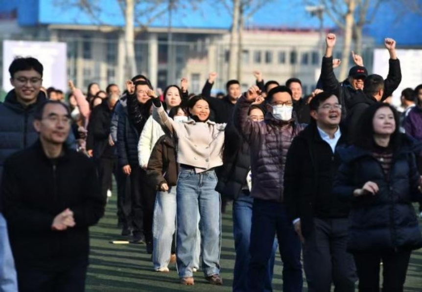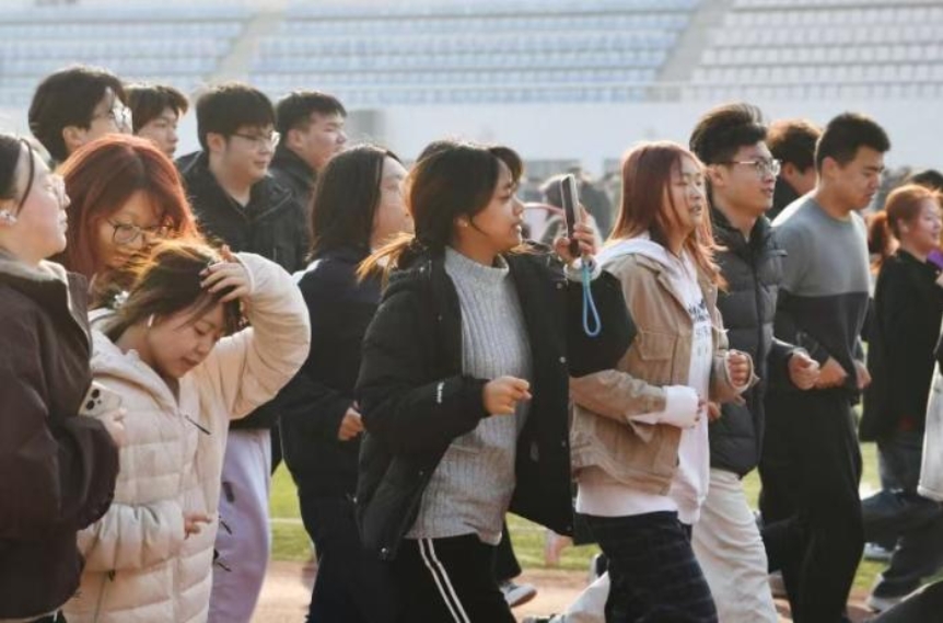 师生们在跑前热身。当天,《BETVLCTOR伟德在线促进学生身心健康行动方案(2026-2029年)》正式发布。
