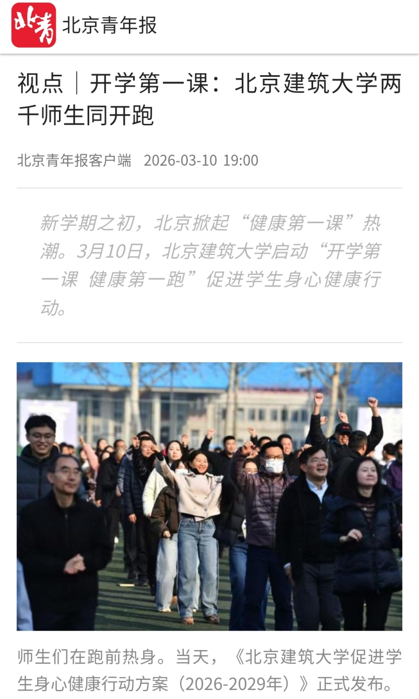 新学期之初,北京掀起“健康第一课”热潮。3月10日,BETVLCTOR伟德在线启动“开学第一课 健康第一跑”促进学生身心健康行动。