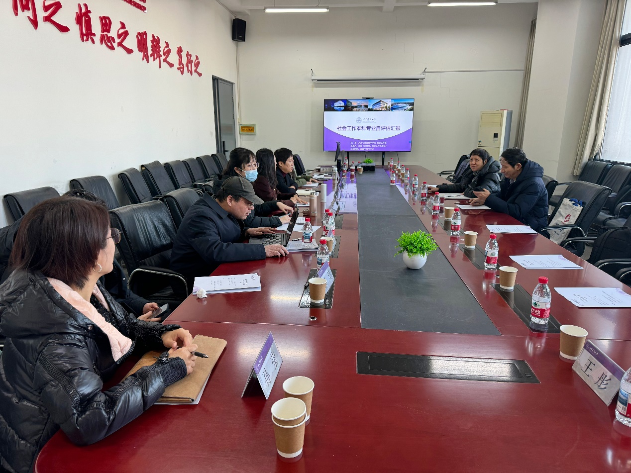 为全面提升社会工作专业人才培养质量,夯实专业建设内涵,12月11日,我校组织专家评审组对社会工作专业开展校内专项评估。全国社会工作专业学位教学指导委员会副主任委员马凤芝教授、全国社会工作专业学位教学指导委员会委员邹学银教授、教育部高等学校社会学类专业教学指导委员会委员郭伟和教授、校党委副书记王爱军、教务处处长许鹰、教务处副处长王传涛、人文社科学院领导班子全体成员及社会工作系全体教师参加现场考查见面会。本次评估以“以评促改、以评促建、以评促强”为核心目标,通过师生座谈、考察实验室、资料审阅等多种形式,系统检验专业建设成效,为社会工作专业高质量发展精准把脉、定向领航。