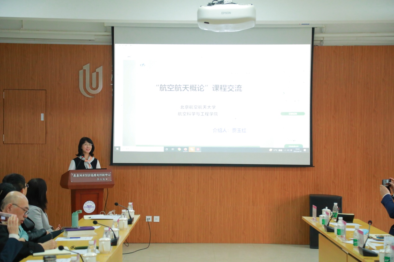 贾玉红教授从课程简介、课程建设、教材建设、团队建设、建设成效等五个方面系统介绍了北京航空航天大学《航空航天概论》课程开设的经验。目前,该课程荣获国家级精品课程、国家级一流课程、国家级课程思政示范课等荣誉,获得学生高度认可,成为北航学生的一张“身份证”。