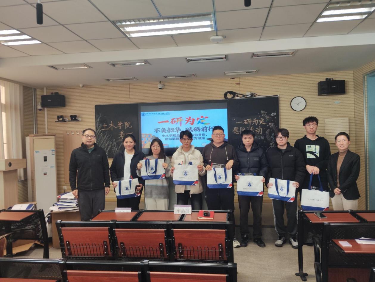 12月5日下午,土木学院组织开展2026届考研冲刺慰问活动。土木学院党委书记车晶波、副书记李守玉、研究生教务员赵巍、辅导员黄元景及2026届考研学生代表参加活动。