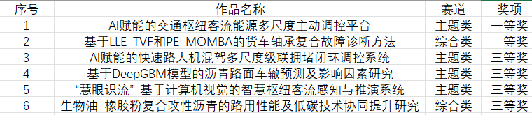 2025年11月2日,由北京市教委主办,北京交通大学承办的第15届北京市交通科技大赛决赛在北京交通大学成功举行。我校共有来自土木学院、机电学院的六支代表队入围决赛,荣获主题类赛道一等奖1项、三等奖3项,综合类赛道二等奖1项、三等奖1项,其中由其中赵霞、李之红两位老师指导,学生张钟月等完成的《AI赋能的交通枢纽客流能源多尺度主动调控平台》获主题类赛道一等奖;我校再次荣获“优秀组织单位”称号。
