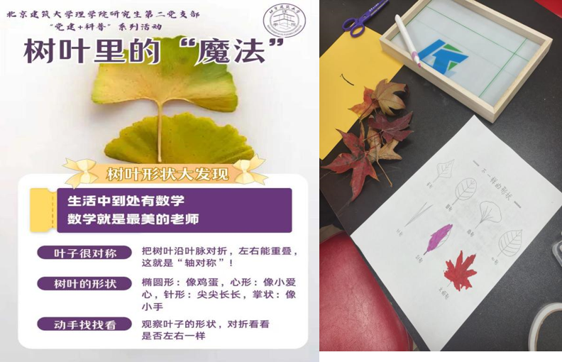 11月8日,理学院“党建+科普”志愿服务团与黄村镇街道联合开展“树叶里的魔法”科普实践活动。活动紧扣几何对称与物理重心两大核心概念,引领青少年在真实情境中开展探究式学习,深刻体悟科学规律与自然智慧的内在统一,为构建“党建引领、实践育人”的科普教育新模式作出有益探索。