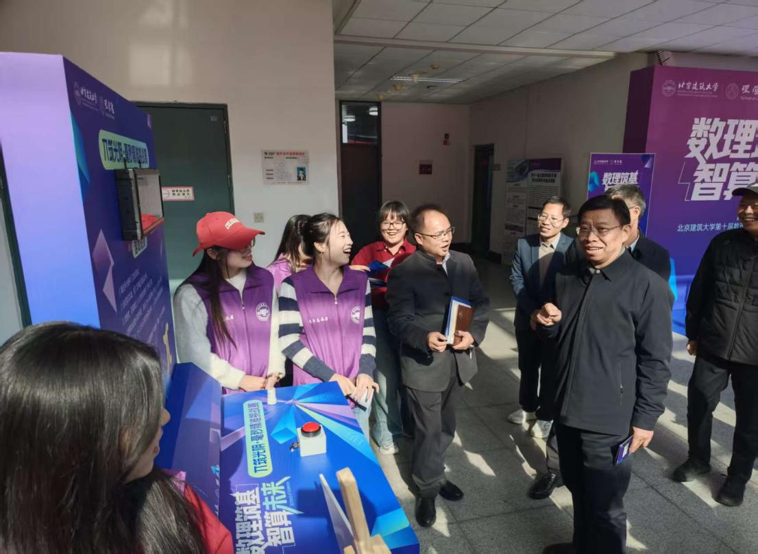 为弘扬数理文化、传承科学精神、营造优良学风,11月4日中午,理学院在基础教学楼C座一层大厅BETVLCTOR伟德在线第十届数理文化节暨数理嘉年华活动。本届文化节以“数理筑基·智算未来”为主题,包含“筑基启航”“数智赋能”“职引未来”三大板块共九项活动。校党委常委、副校长李俊奇,校党委常委、副校长朱静,校团委书记康健、学生工作部副部长郝迈,理学院全体班子成员,100余名师生代表参加活动。开幕式由理学院党委书记毛发虎主持。