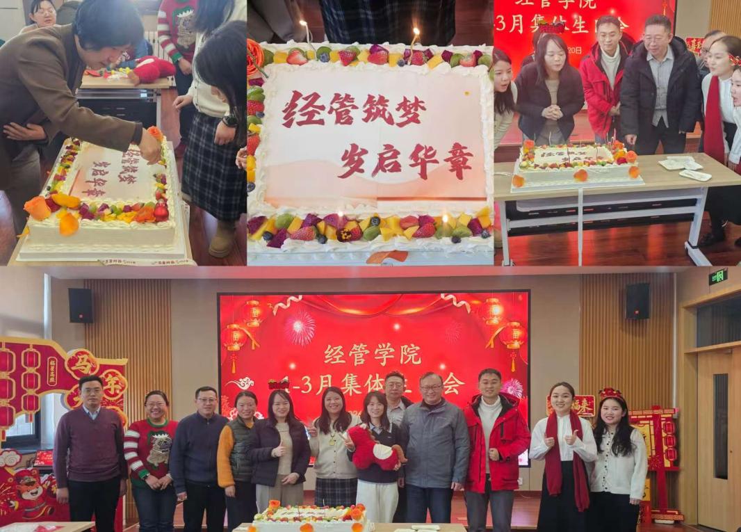 文艺展演落幕,活动进入第二篇章“启航新岁”,一场温馨的集体生日会如约而至。学院特意为1-3月生日的教师们筹备了专属惊喜,陈朝晖副校长亲自送上新春祝福与生日寄语,与寿星一同切开象征团圆美满的蛋糕。点点烛光映照着幸福洋溢的笑脸,温情的生日歌在现场久久回荡。这份跨越新春的温暖情谊,让经管学院大家庭更具凝聚力,也为整场活动增添了浓情暖意。