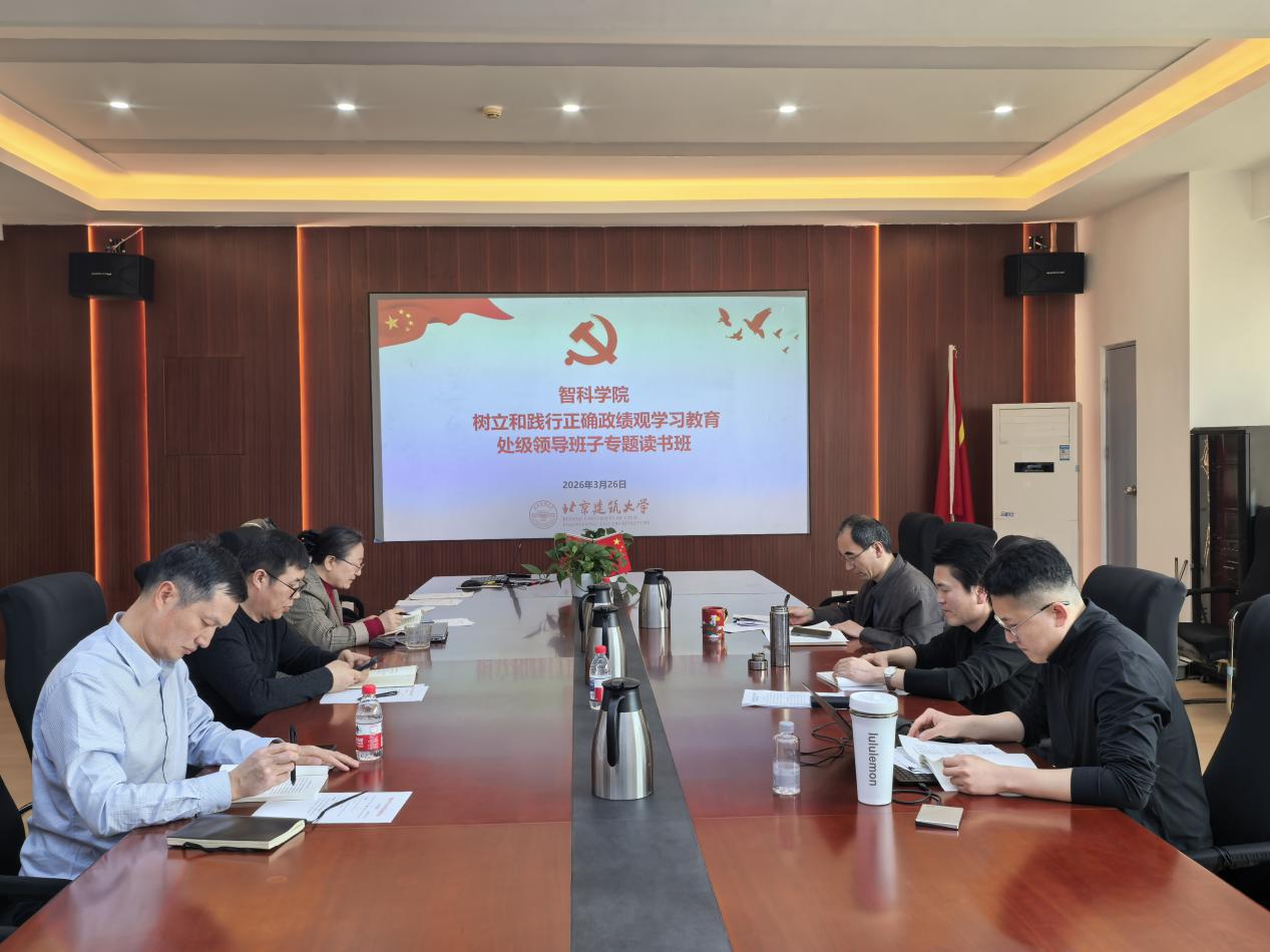 3 月 26 日,智科学院党委举办树立和践行正确政绩观学习教育处级干部读书班,深入学习贯彻习近平总书记关于树立和践行正确政绩观的重要论述。学院处级领导班子全体成员参加读书班学习。
