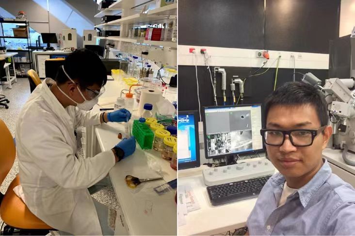 简美鹏在留学读博期间进行实验