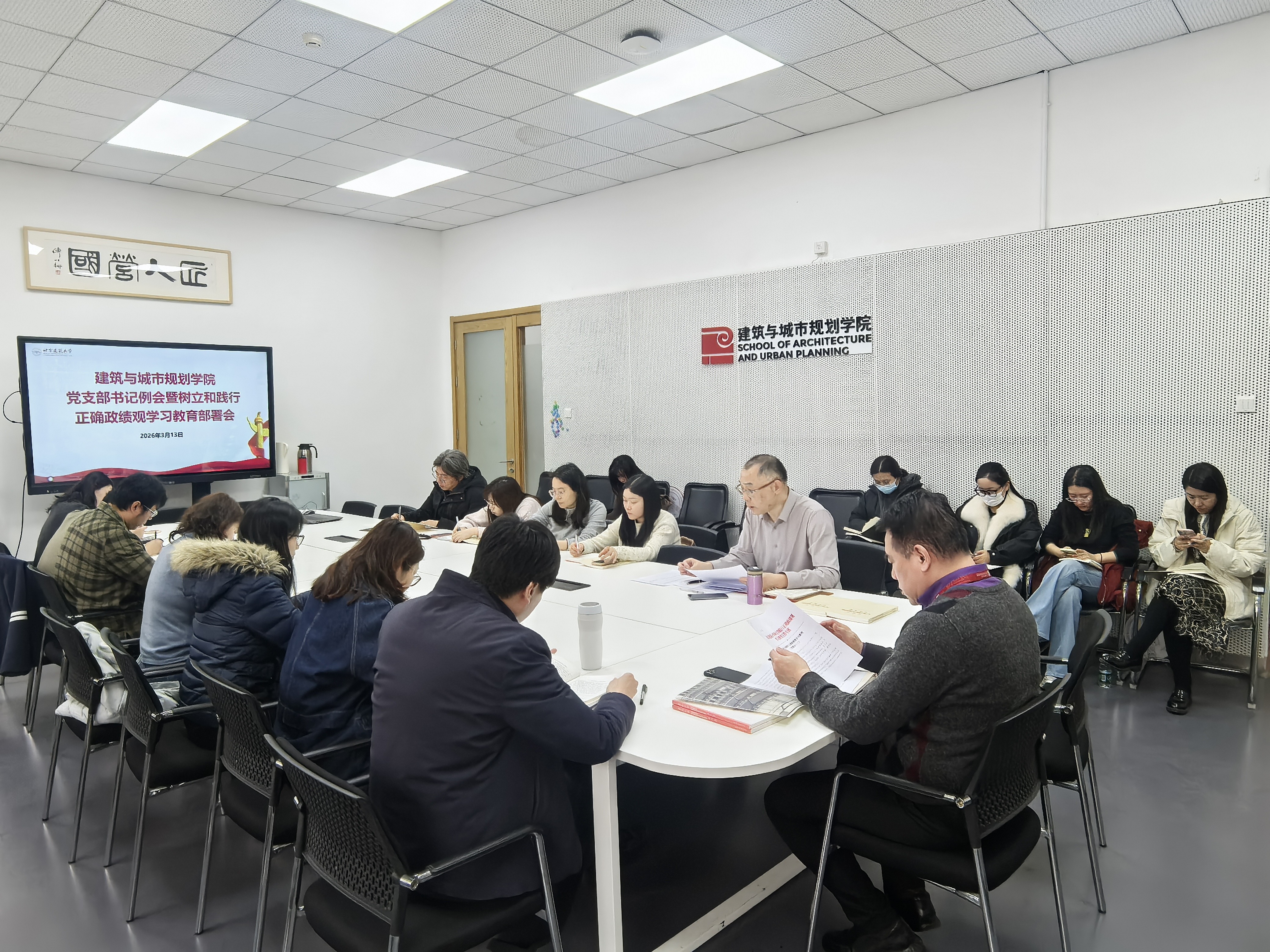 3月13日,建筑与城市规划学院召开党支部书记例会暨树立和践行正确政绩观学习教育再部署动员会,进一步对树立和践行正确政绩观学习教育工作提出具体要求。学院党委书记何立新主持会议,全体党支部书记参会。