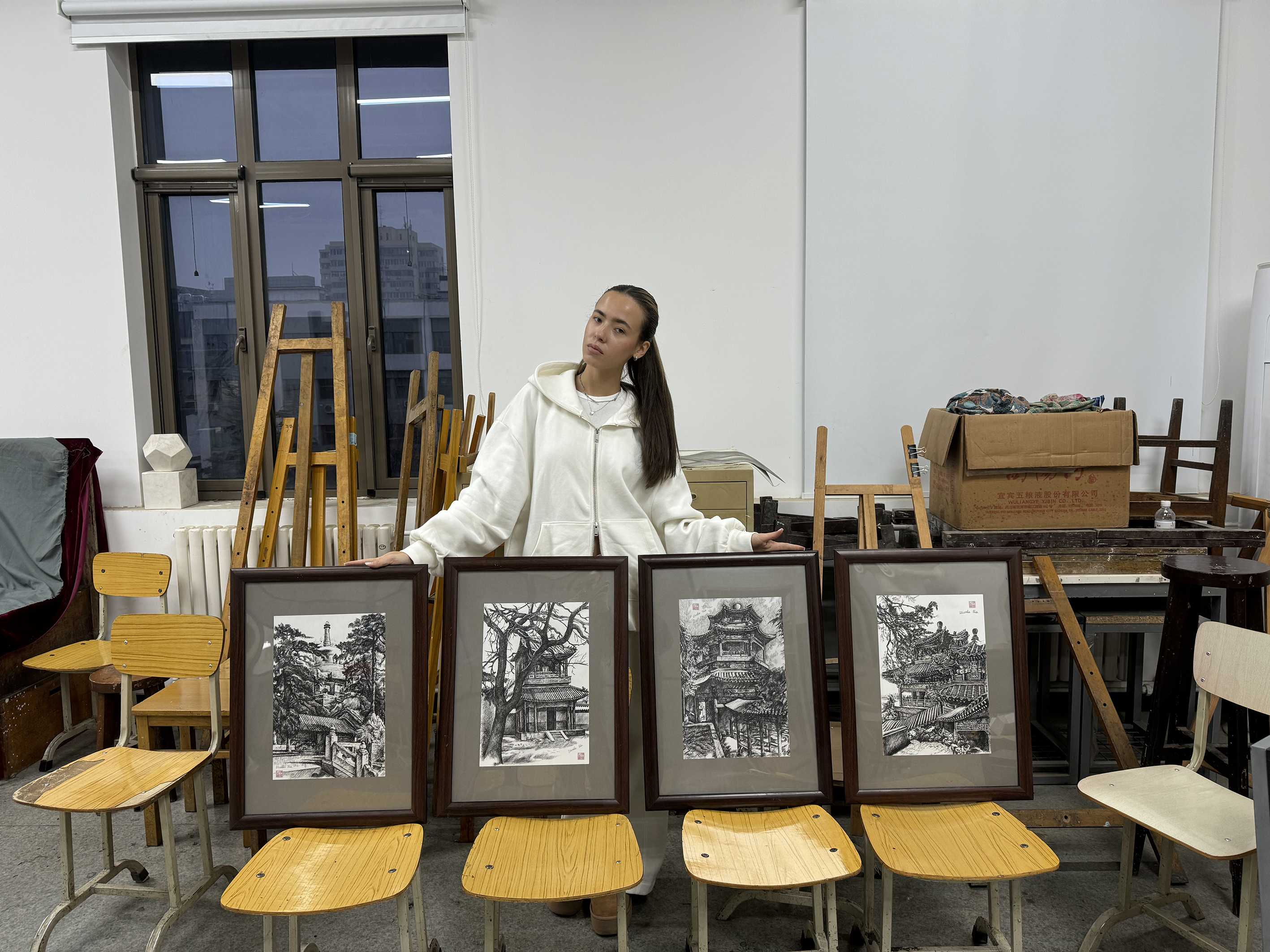 初到中国,第一次独自出国带来的紧张感,很快就被老师和同学的热情与友善所化解。闲暇时,她穿梭于北京的胡同与古迹,从故宫的飞檐斗拱到万宁桥的斑驳石砖,从现代摩天楼到老城街巷,这座城市古今交融的独特气质,成了她最鲜活的灵感源泉。“中国是充满无限可能的地方,这里的每一处建筑都在诉说故事。”伊娃的初印象,早已化作深耕中国文化的动力。