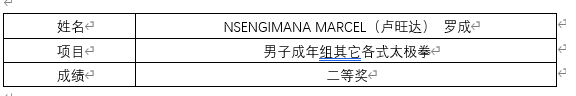 运动员:NSENGIMANA MARCEL(卢旺达) 罗成