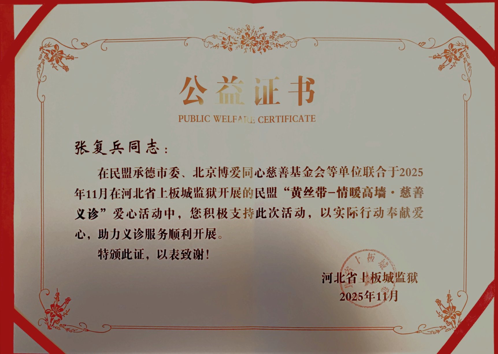 黄花带露,红叶随风。在万物收藏时节,人间的温暖正在传递。2025年11月11日,民盟中央社会服务委员会联合北京博爱同心慈善基金会、民盟承德市委、承德市慈善总会等单位在河北省上板城监狱举办“黄丝带·情暖高墙”狱园义诊暨法律咨询系列公益活动。来自首都的“白衣天使”和法律专家为特殊群体送去冬日里的温暖及关怀。