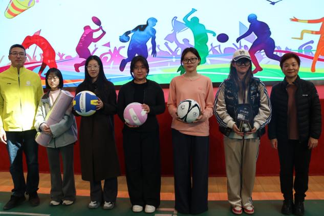学院党委书记孙冬梅、副书记曹洪涛为各班文体委员发放篮排足球、羽毛球拍、乒乓球拍、瑜伽垫等运动器材,并宣布本次身心健康嘉年华正式启动。