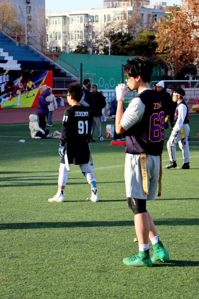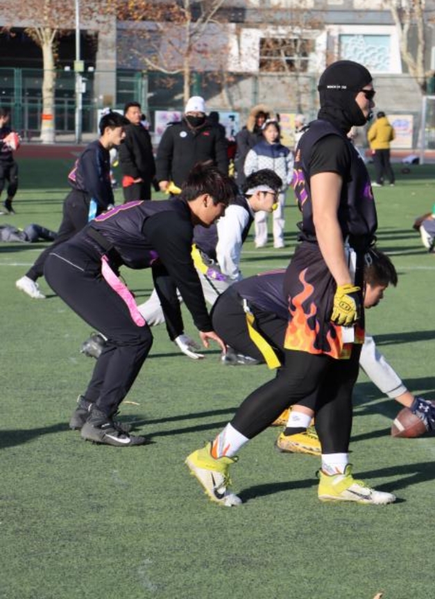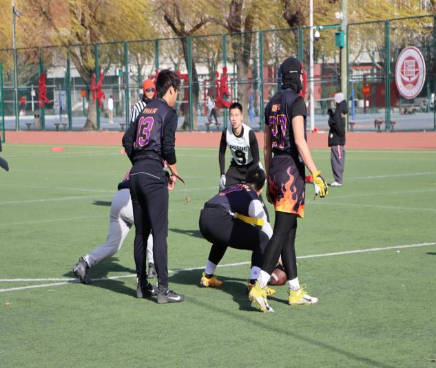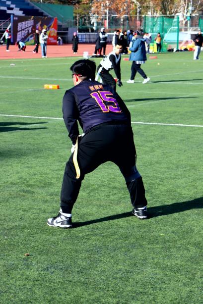 小组赛阶段,北建大橄榄球队展现出强劲竞争力。面对清华大学、中国地质大学、北京联合大学等劲旅,队员们凭借默契配合、凌厉攻防和顽强斗志,小组赛第一场以29:7战胜地大,第二场气温回升,进攻组四分卫刘钰滨状态渐佳,跑锋王天右带伤上阵,以默契的配合打破了场下的质疑声,以18:7战胜清华大学队,结束了这场艰难的对决。赛后清华主教练向钢筋工队员表示认可;第三场与北京联合大学竞争,天色愈晚,曾经的老学长归队观赛,站在场边为场上队员呐喊助威,钢筋工新人皆不负期望,拼尽全力;防守组队长张昊翀,伤病后归来仍是钢筋工最有力的后盾,每一次坚定的下旗和战术的指挥,无不体现出他的经验与曾经刻苦的汗水,在这一场比赛中钢筋工完成了两次抄截,让比赛以13:0毫无悬念的结束。钢筋工橄榄球队每一个人都坚持到最后一刻,三场比赛均以出色表现完胜对手,毫无悬念挺进淘汰赛,展现了钢筋工橄榄球队的硬核实力。