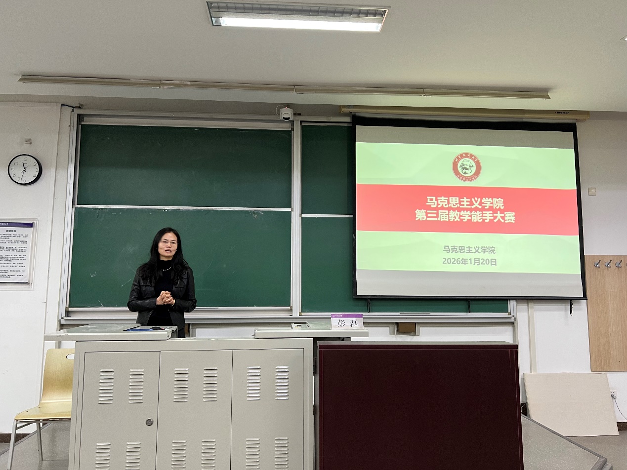 马克思主义学院党委书记彭磊做了总结讲话。她对各位评委嘉宾莅临指导表示诚挚地感谢,尤其感谢他们对本次参赛选手提出有针对性的一对一辅导建议,对青年教师提升教学质量和教学水平帮助很大;同时希望全体参赛教师好好吸收专家建议,认真打磨相关课程,将价值塑造、知识传授与能力培养有机融合,通过思政课这一主渠道和主阵地不断筑牢学生的理论根基与制度自信,进而为全面提升思政课教学质量,推动马院内涵式高质量发展做出新的贡献。