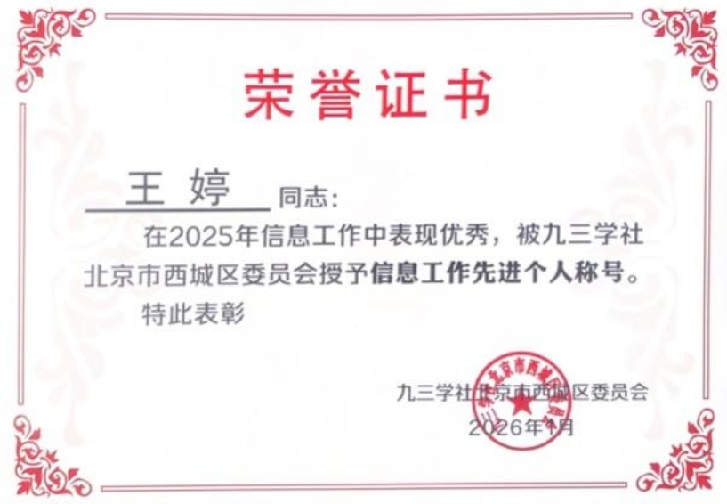 王红春、王婷、孙成双、聂平俊、索智、桑秋六位社员获评“信息工作先进个人”,是支社参政议政工作成果的集中缩影。他们紧密结合自身专业领域和国家社会热点难点问题,敏锐捕捉信息点,深入调研思考,撰写了大量具有前瞻性、针对性、可行性的社情民意信息,为上级组织和有关部门掌握情况、科学决策提供了重要依据,充分展现了我支社社员高度的责任感和精湛的专业素养。