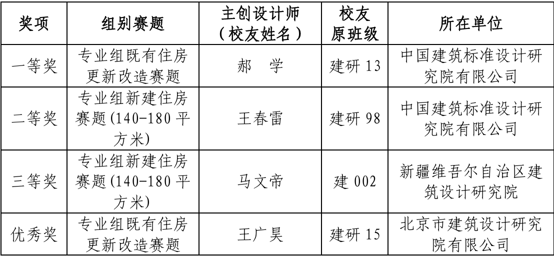 近日,住房城乡建设部公布全国“好房子”设计大赛获奖名单。在全国众多参赛作品中,我校校友表现突出,共荣获一等奖、二等奖、三等奖及优秀奖各1项。