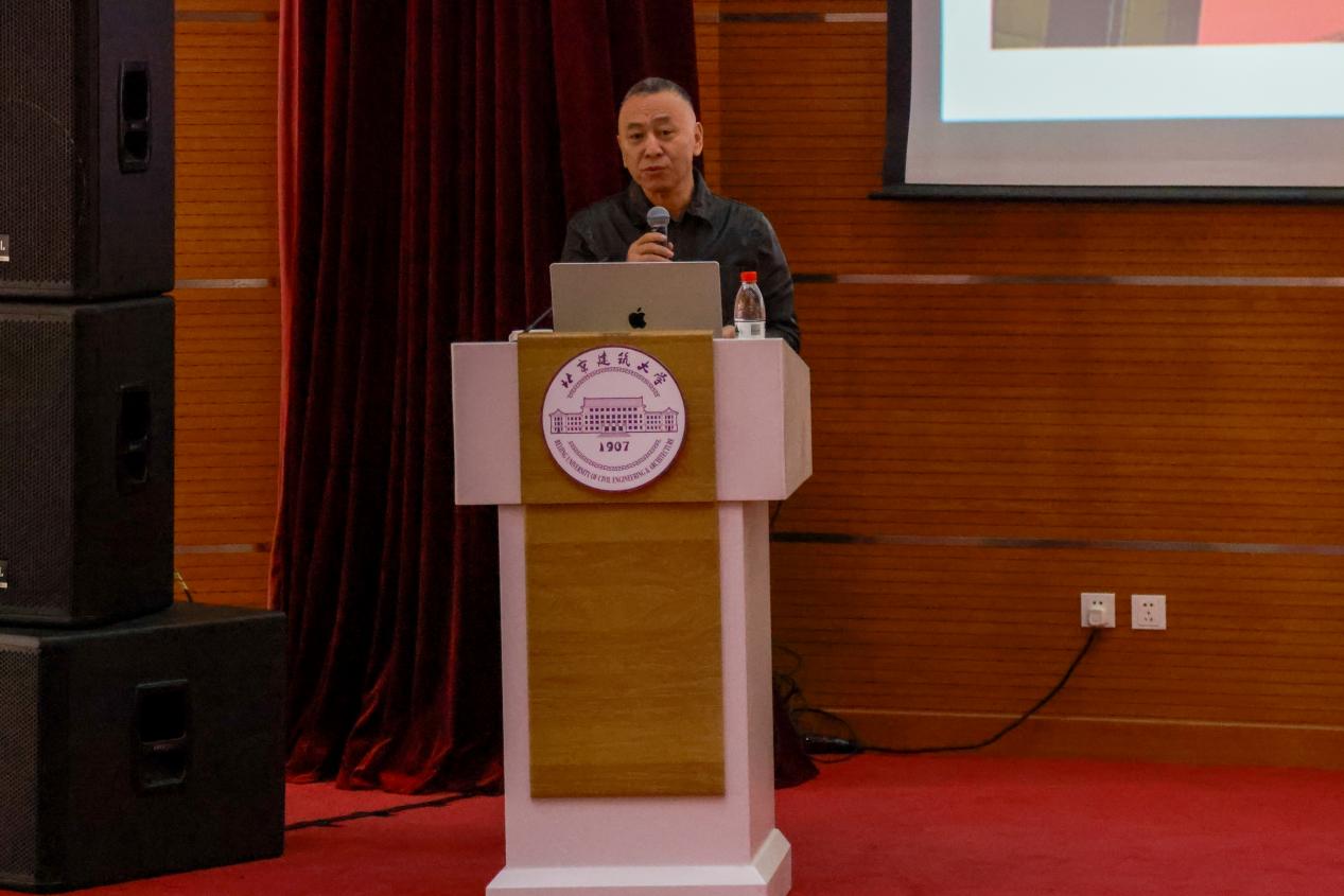 11月9日,2025年建大讲堂第三期在基础教学楼A座报告厅举行,本次讲座邀请城市公共艺术家、中国艺术研究院名誉研究员、中华诗词发展基金会文化艺术总监刘恒甫老师主讲。刘恒甫以“城市公共艺术赋能城市建设”为题做专题报告并与在场师生亲切交流。本次建大讲堂活动由党委宣传部、人文与社科学院联合主办,400余名师生现场参与。讲座由人文学院教授秦红岭主持。
