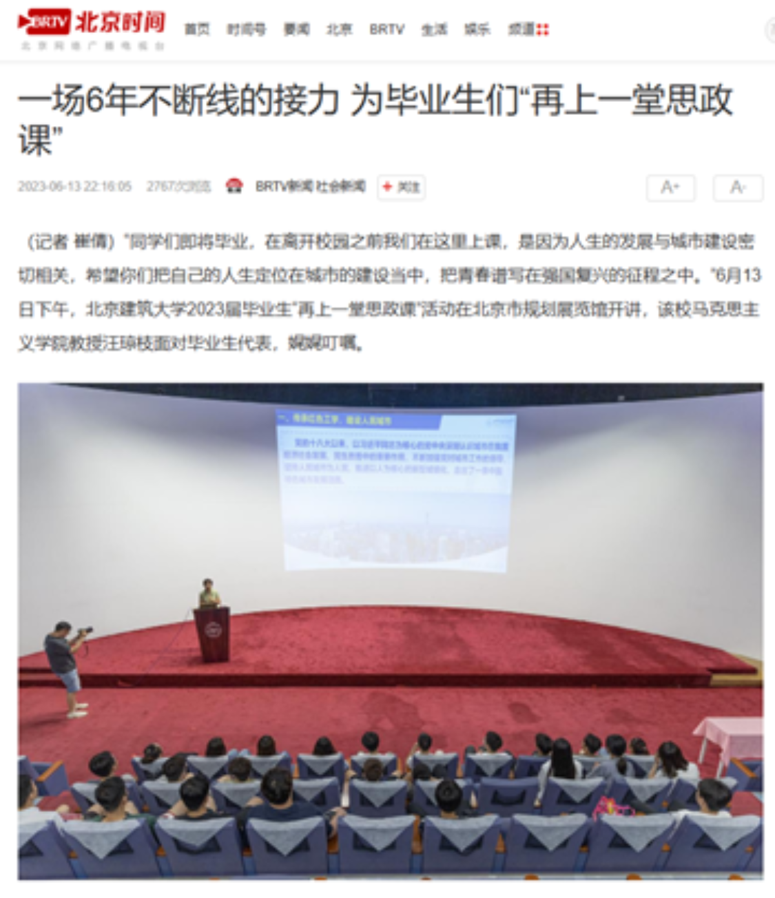 五年来,学校始终坚持以习近平总书记“3.18”重要讲话精神为指引,不断深化思政课改革创新,持续强化大思政工作体系,积极发挥思政课“主渠道”作用,制定“大思政课”建设方案,率先开设“习近平新时代中国特色社会主义思想概论”必修课,打造“人民城市”大思政课,入选第三批北京市重点建设马克思主义学院,入选教育部思政课教学方法改革项目择优推广计划和北京高校思想政治理论课教育教学改革示范点,思政课建设取得一系列成绩。