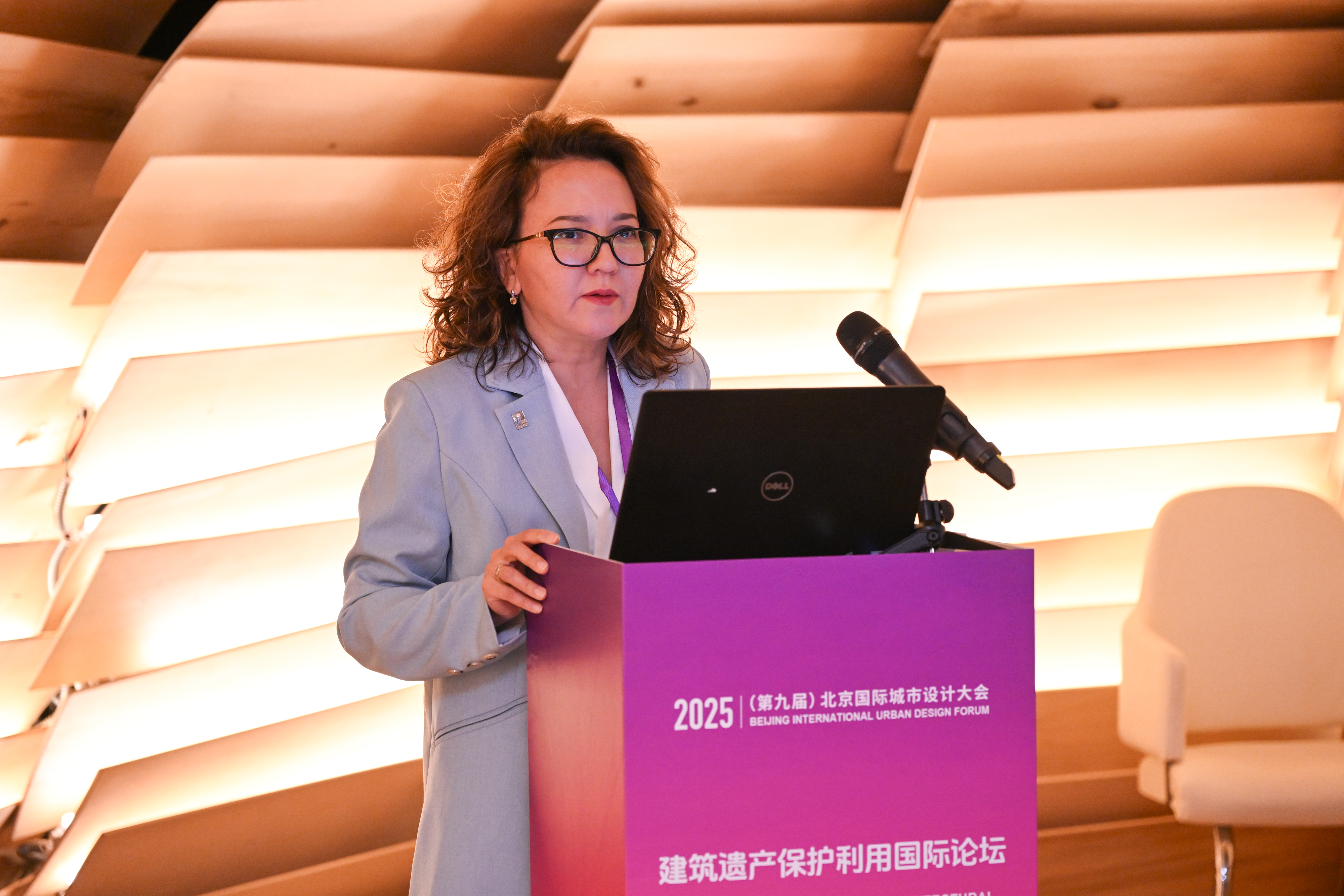 陈朝晖在致辞中向与会嘉宾表示热烈欢迎与诚挚感谢,并介绍了学校在建筑遗产保护领域的最新进展。她谈到,本次论坛选址北京规划展览馆具有三层重要意义:规划馆本身就是一部“活的北京城市成长史”,生动呈现了北京在保护与发展之间的平衡智慧;其坐落于已列入世界遗产名录的北京中轴线,体现了文明互鉴与跨国协作的遗产精神;选址也与学校“服务首都、联结世界”的使命同频,有助于汇聚国际经验,共同探索绿色与数字技术融合赋能遗产保护的新路径。她指出,作为国内唯一构建建筑遗产保护“本科-硕士-博士-博士后”全链条人才培养体系的高校,学校近年来持续深化该领域的国际合作与创新实践:牵头成立的“一带一路”建筑类大学国际联盟已覆盖全球33个国家及地区的101所成员单位,在哈萨克斯坦、乌兹别克斯坦设立的鲁班书院分院有效推动了建筑文化遗产传承与本土化人才培养;同时,学校联合中国丝路集团、斯里兰卡国家测绘局、哈萨克斯坦建筑与土木工程学院、乌兹别克斯坦撒马尔罕国立建筑大学等单位共同打造“全球建筑遗产数字保护与创新应用平台”,初步建成覆盖多国别、多类型的建筑遗产数字基因库。陈朝晖表示,期待以本次论坛为契机,与各国高校、机构进一步深化科研协同、人才共育等实质性合作,全力支持“建筑遗产保护利用国际论坛”常态化举办,共同为全球建筑遗产保护事业贡献智慧与力量。
