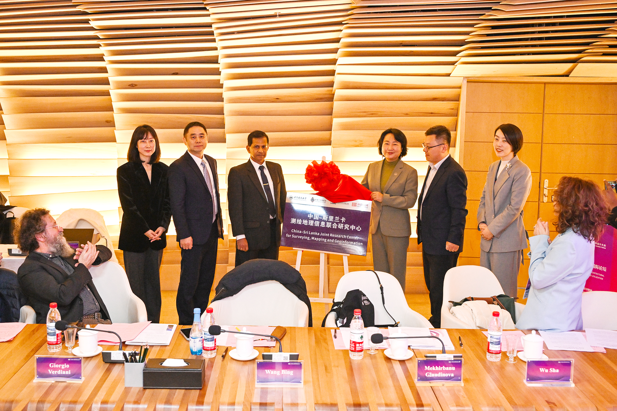开幕式上举行了“中国-斯里兰卡测绘地理信息联合研究中心”揭牌仪式,标志着两国在测绘技术与遗产保护领域的合作迈入新阶段。陈朝晖与斯里兰卡国家测绘局局长罗哈纳、住房城乡建设部历史文化遗产监测重点实验室首席专家张宁、中国丝路集团有限公司数字事业部总经理吴强共同为研究中心揭牌。北京市规划展览馆馆长赵幸和对外交流合作处处长丁帅一同见证。