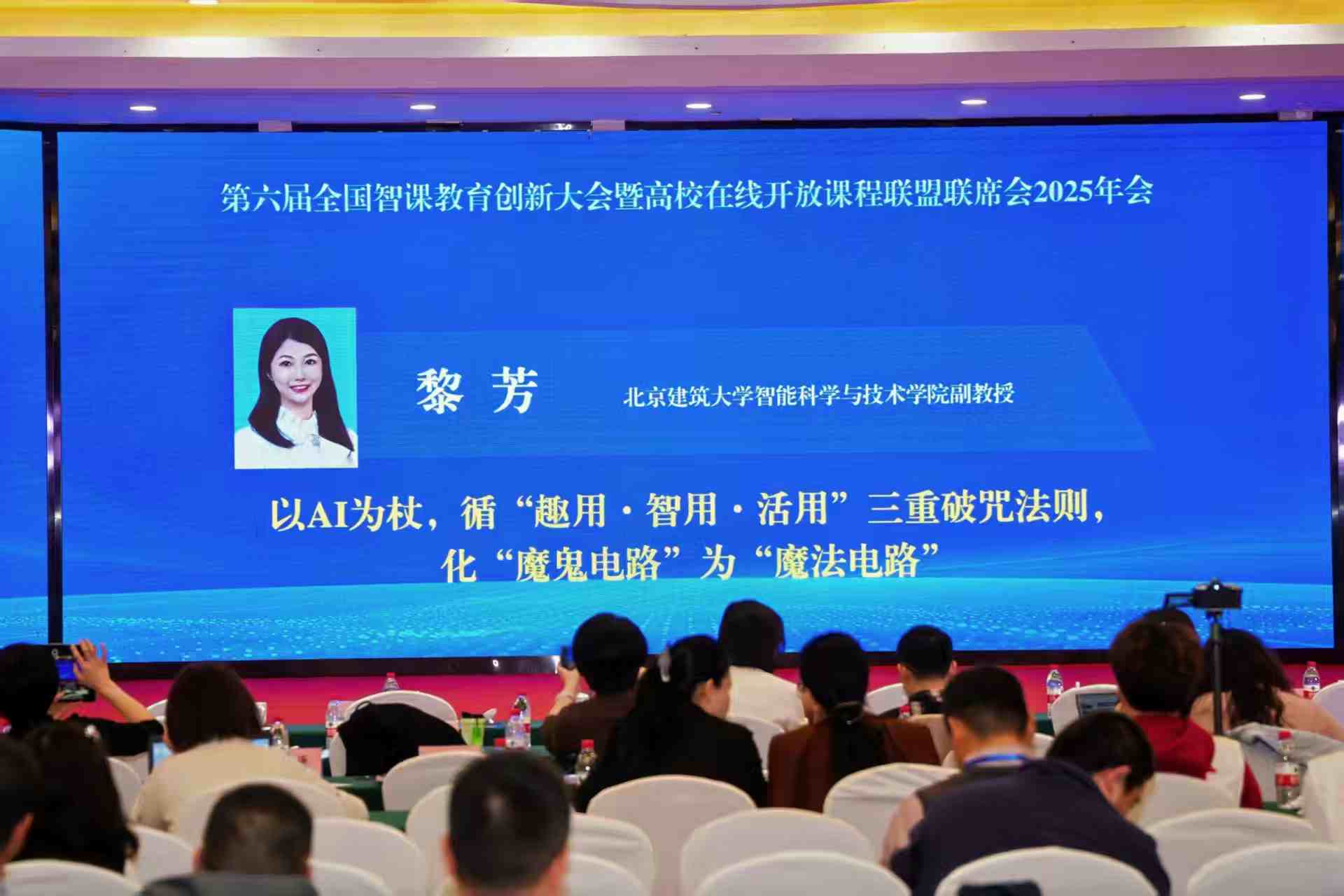 基于丰富的案例成果,我校智科学院黎芳副教授应邀作大会主题报告。她以“数智赋能,让‘魔鬼电路’变‘魔法电路’——《模拟电子技术》全流程创新教学实践”为题,从课程概述、理念思路、数智赋能及成效推广四方面进行了阐述。课程通过趣味化引导激活学习兴趣、可视化构建增强应用性、个性化实践推动深度学习、智能化评价实现精准教学,引发了与会专家及兄弟院校教师的关注与讨论。报告结束后,黎芳老师就人工智能赋能专业课程的具体实施路径,与现场同行进行了交流。