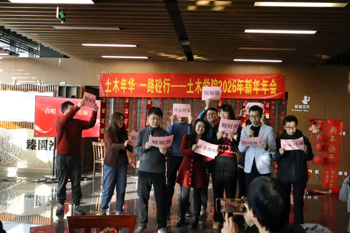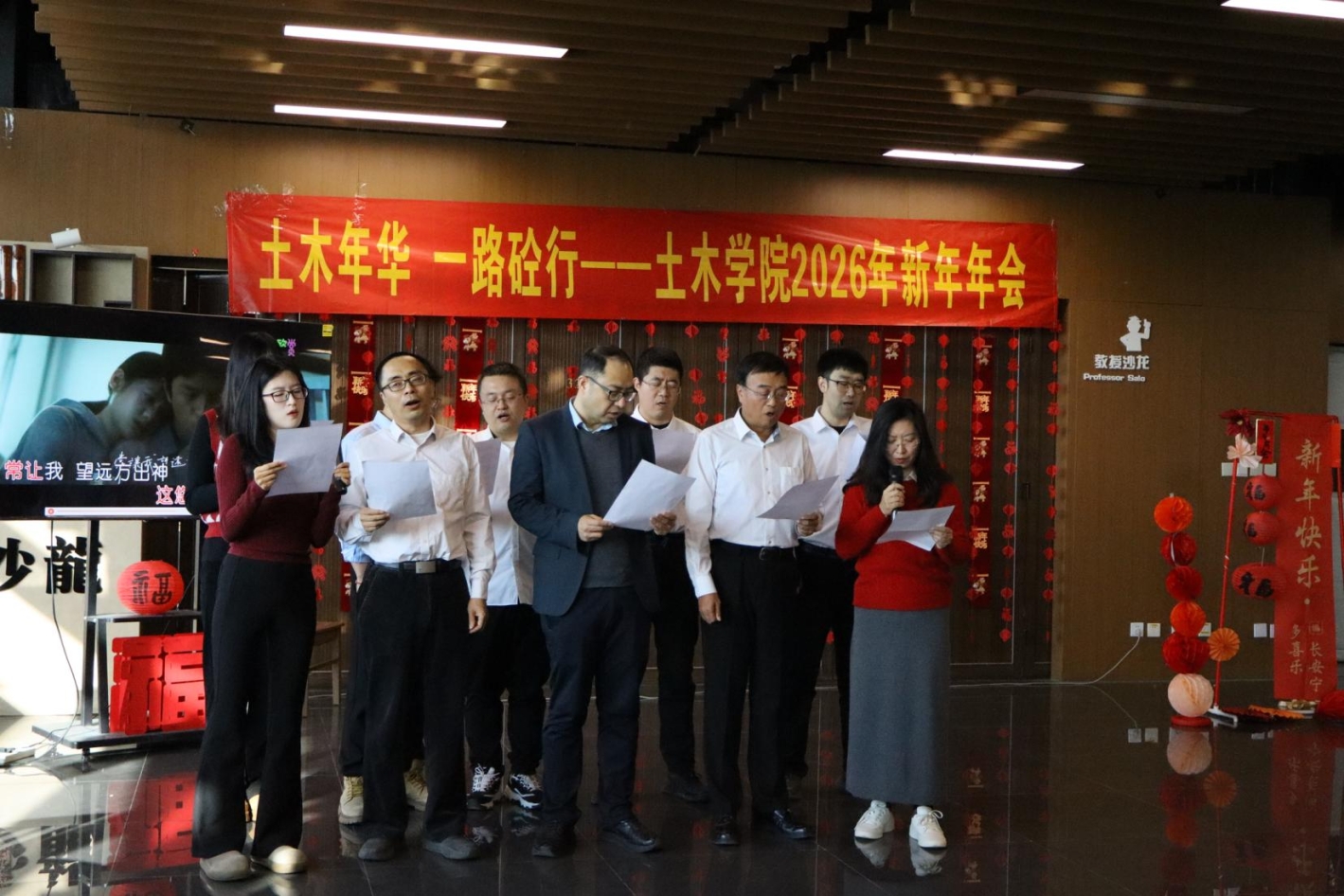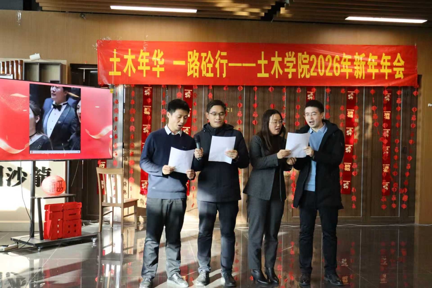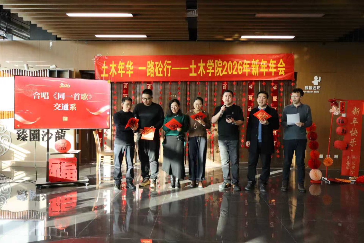 为凝聚师生情谊、展示学院昂扬风貌,2026年1月16日下午,土木与交通工程学院举办“土木年华一路砼行”师生联欢会。学院师生齐聚一堂,在欢声笑语中共叙情谊、同迎新春。联欢会由辅导员张浩杰、于淋西主持。