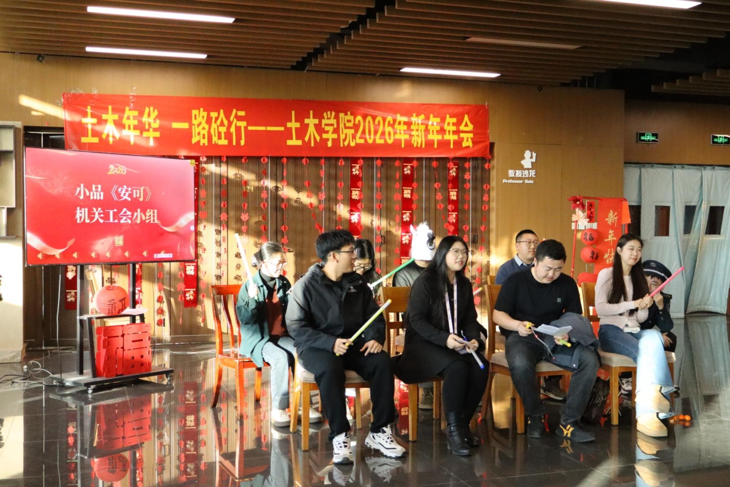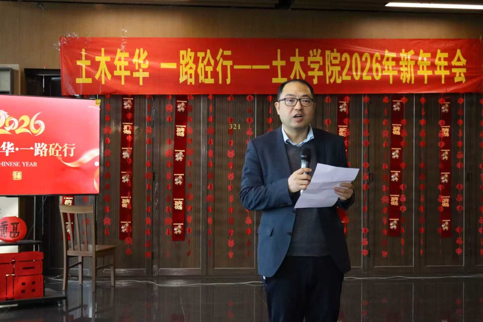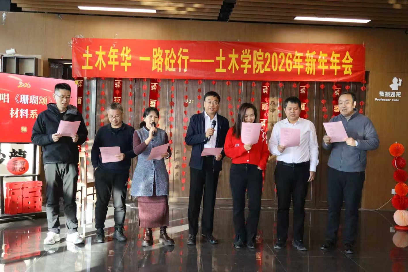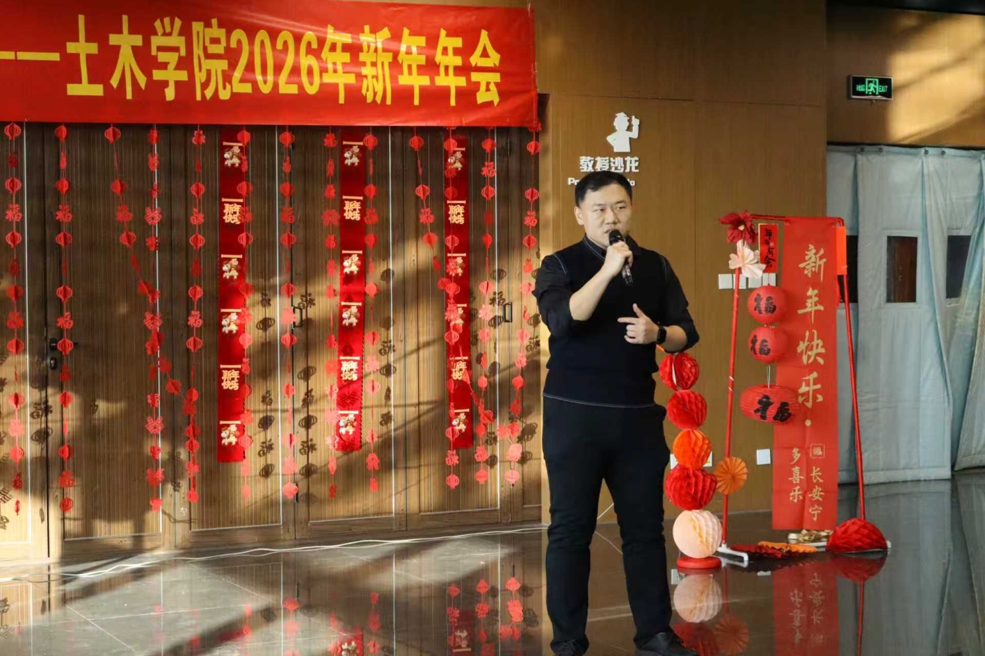 为凝聚师生情谊、展示学院昂扬风貌,2026年1月16日下午,土木与交通工程学院举办“土木年华一路砼行”师生联欢会。学院师生齐聚一堂,在欢声笑语中共叙情谊、同迎新春。联欢会由辅导员张浩杰、于淋西主持。