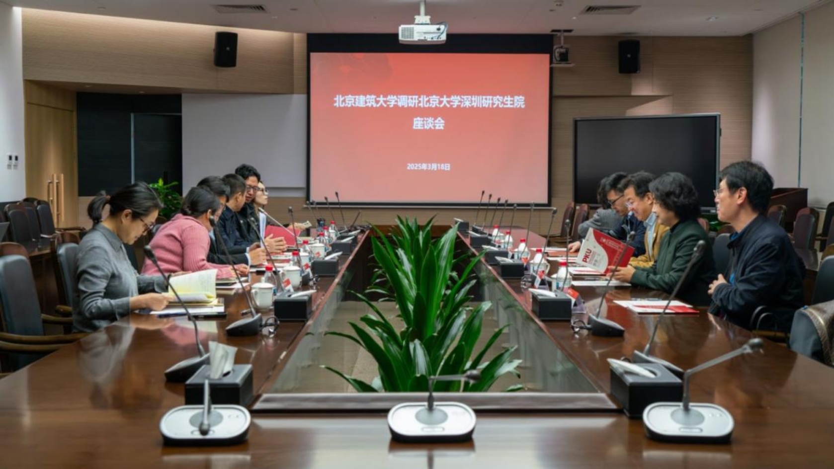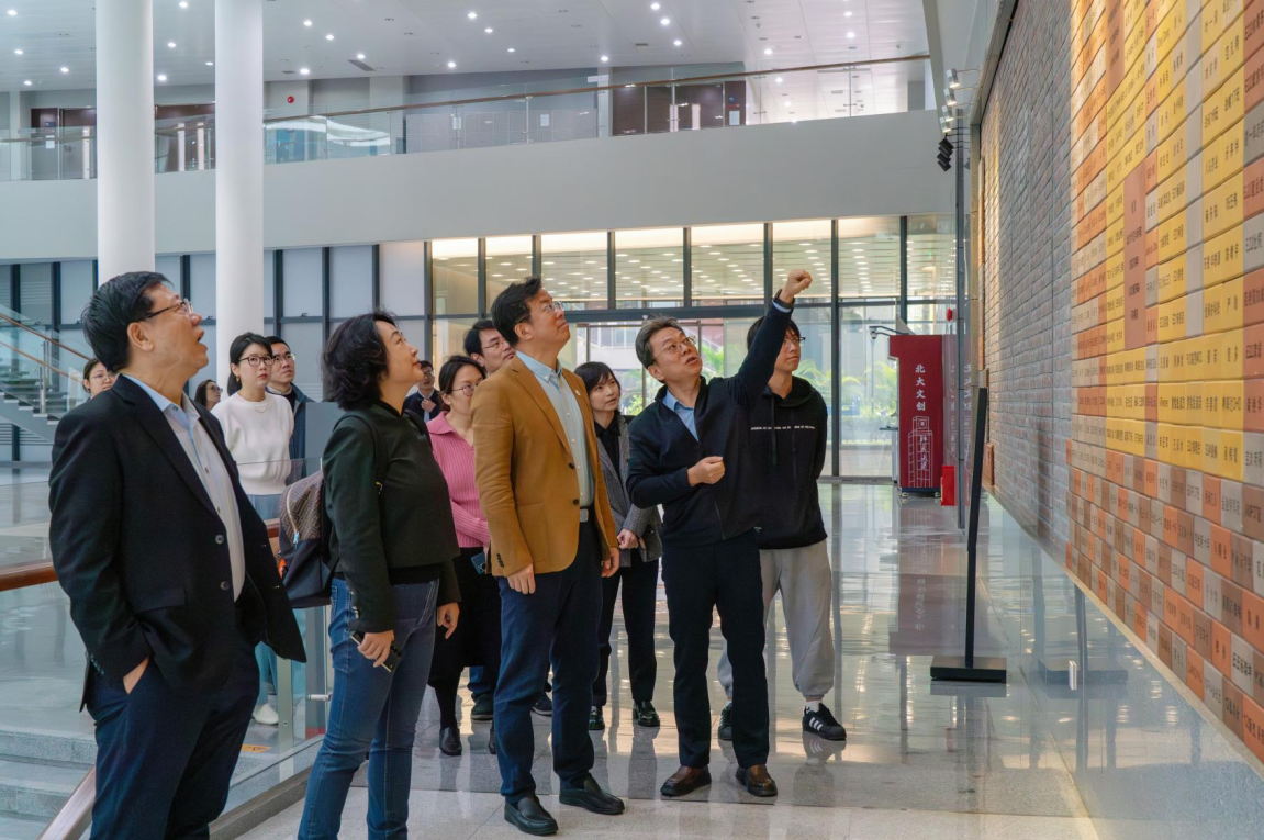 在北京大学深圳研究生院,双方围绕创新人才培养模式、挖掘科研合作潜力、师资人才队伍建设、科教产教融合路径等方面开展了深入交流,并实地参观了汇丰商学院、国际法学院、信息工程学院、城市规划与设计学院、学生活动中心等学院及校园环境。