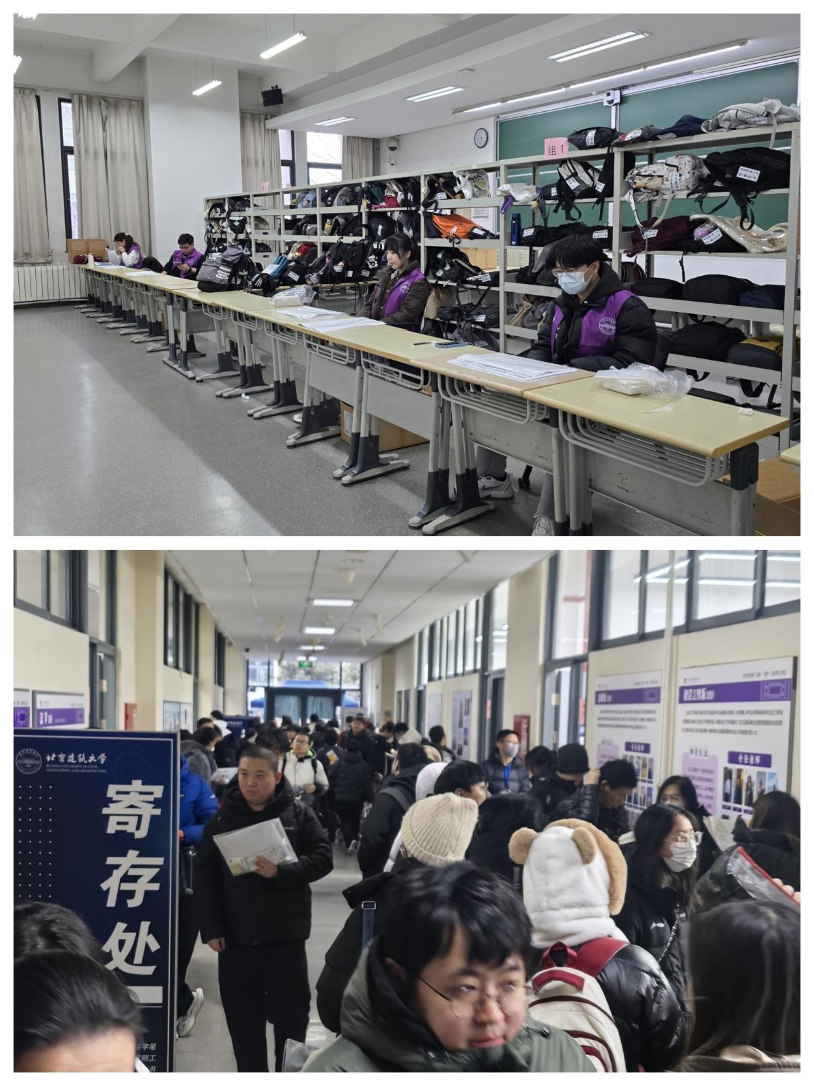 在考生物品存取管理中,延续创新,实施自主化、规范化管理模式:充分盘活校内图书馆书架资源,替代外包服务,对存放物品实施标签化、上架式规范管理;在考试楼毗邻区域划定物品集中存取专区,每日统筹40名校内工作人员与志愿者形成“专人专岗”服务体系,通过全程引导考生有序排队、分类存取,构建起高效便捷的物品管理流程,考试期间物品存储累计服务量超过3000件次。通过优化校内资源配置,实现精细化服务保障,切实提升考生服务体验。