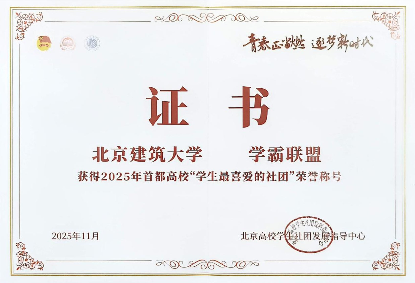 2025年首都高校“学生最喜爱的社团”获奖证书