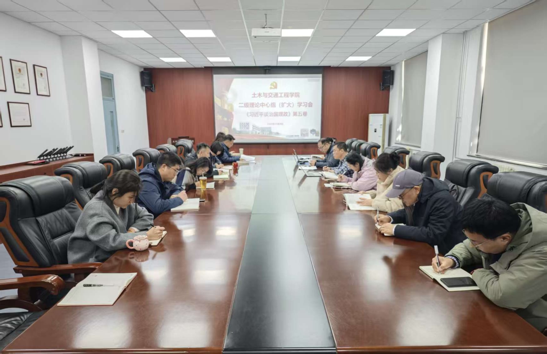 近日,土木学院党委召开二级理论中心组(扩大)学习会,专题学习《习近平谈治国理政》第五卷。学院党委理论中心组成员、党委委员、党政联席会成员参加学习。会议由党委书记车晶波主持。
