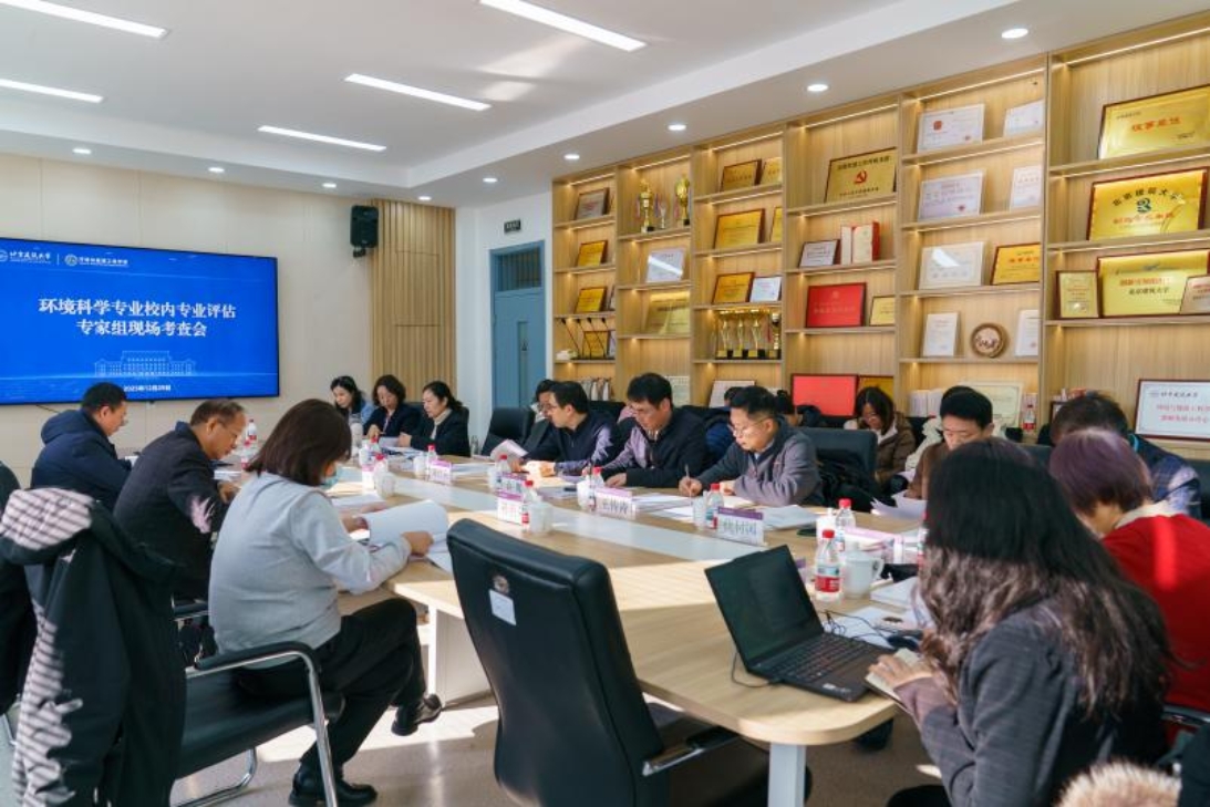 在现场汇报与考查阶段,专家组组长胡洪营教授主持第二阶段会议。环境科学专业负责人马文林教授作自评汇报,系统介绍专业发展历程、培养目标、课程体系、师资队伍、特色创新及改进方向。专家组认真审阅自评报告,实地考查水环境国家级实验教学示范中心、城市水环境分析研究中心及课外科技活动实验室,查阅教学资料,并与师生代表座谈交流。