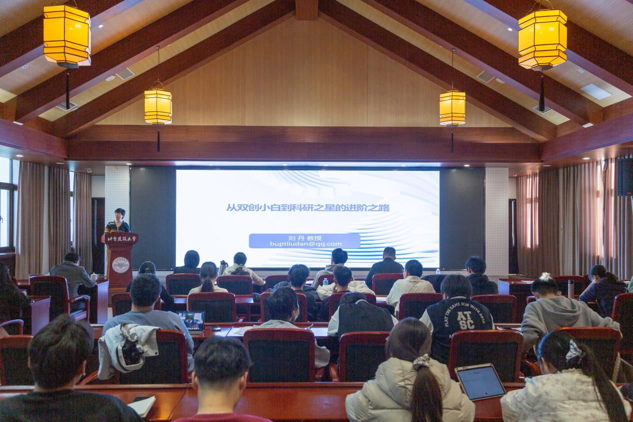 培训环节中,学校邀请北京邮电大学教授刘丹作题为《从双创小白到科研之星的进阶之路》的首场备赛培训。她聚焦“项目转化”与“团队建设”,为师生打通从技术创意到竞赛金奖的关键壁垒提供了实用工具和清晰思路。