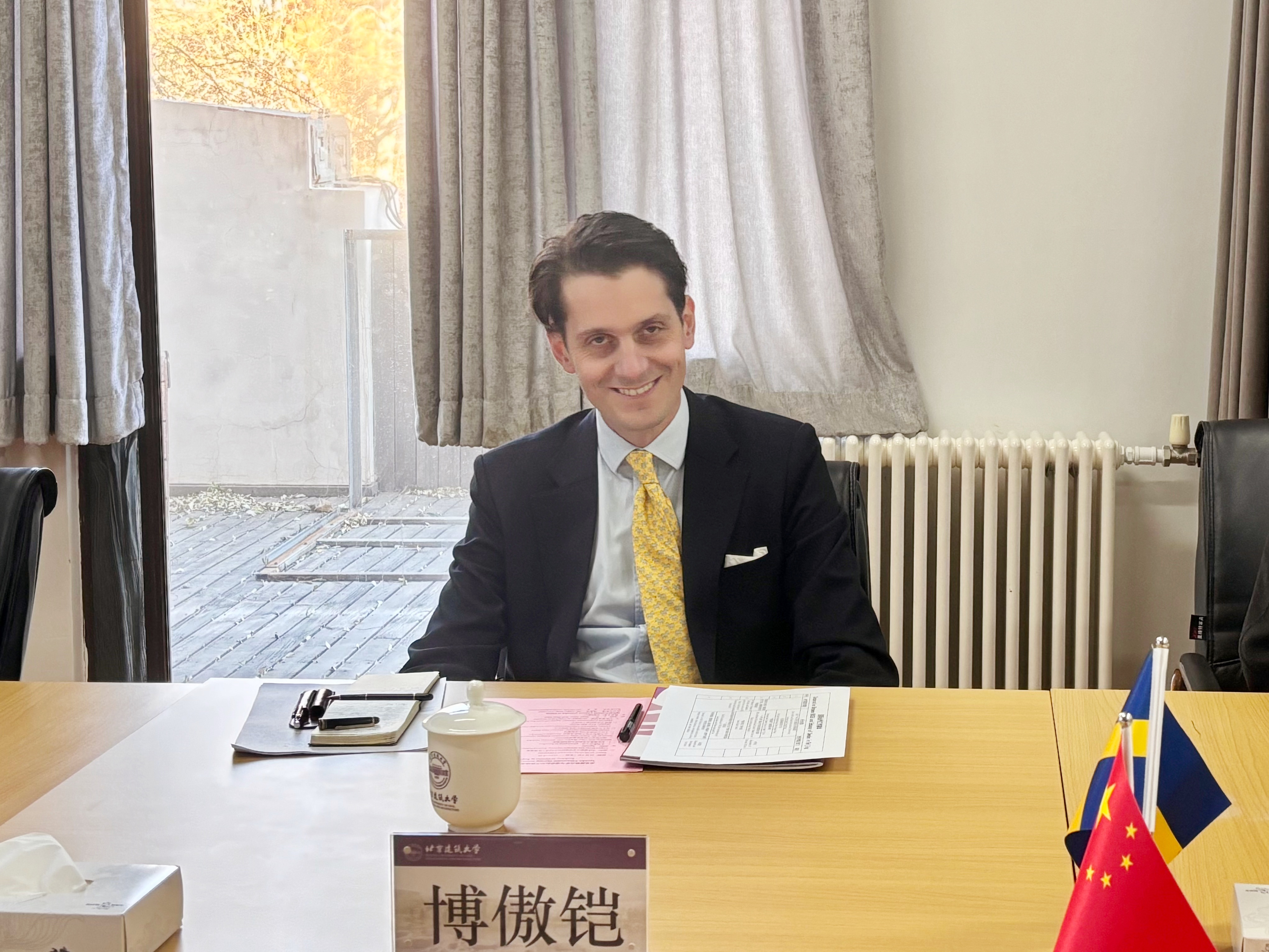 12月8日,瑞典驻华大使馆参赞博傲铠一行访问我校。双方围绕教育合作、科研创新与文化传承等议题展开深入交流。我校对外交流合作处、科学技术发展研究院和北京北建大建筑设计研究院相关负责人参会。