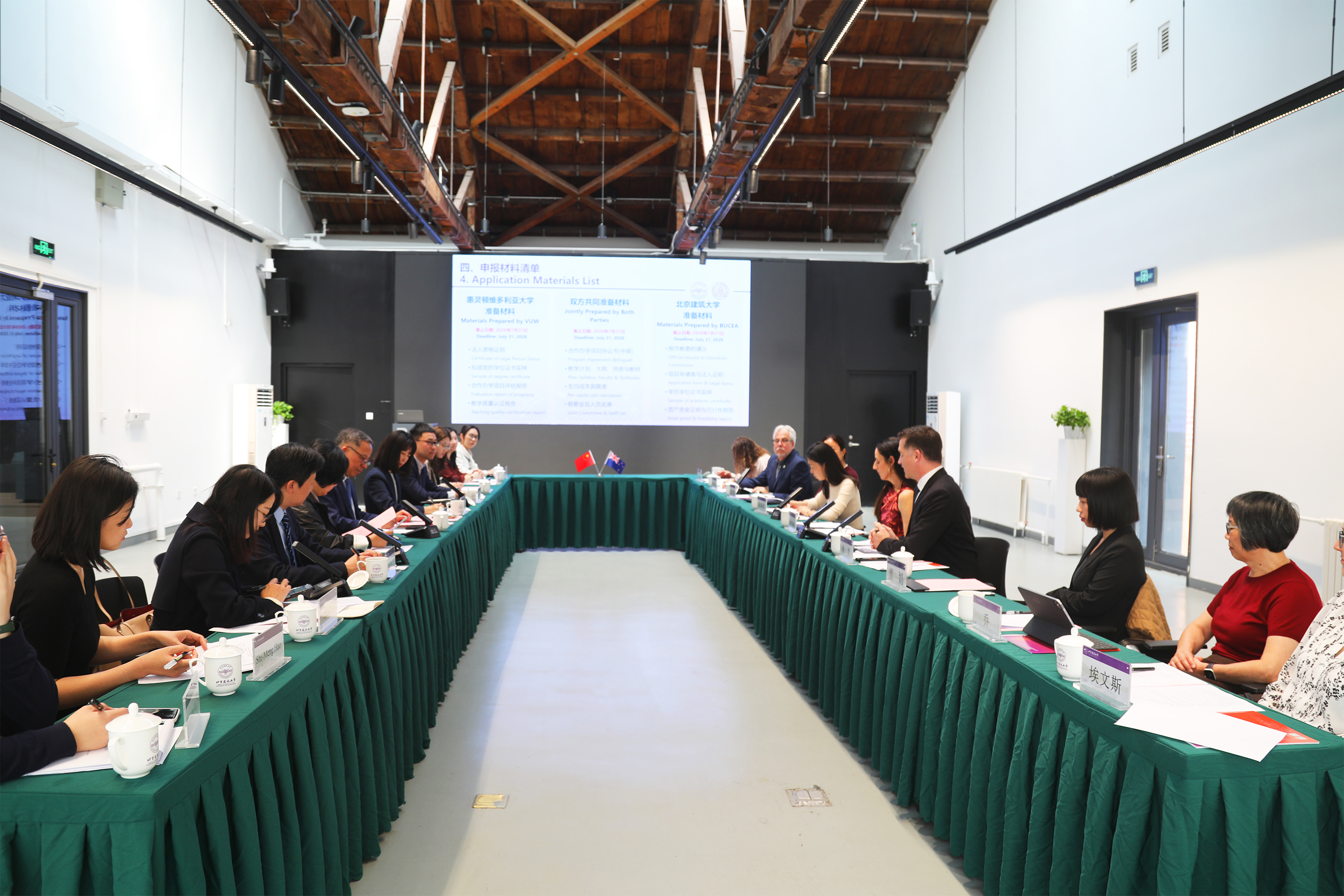 班尼斯特对北建大的热情接待表示感谢。她表示,北建大在城市规划、绿色建筑、气候变化等领域展现的专业实力与领先地位令人印象深刻,其学科特色与发展理念与惠灵顿维多利亚大学合作方向高度契合,期待两校以此为基础,在多领域开展更深入的合作交流。她期待以国家留学基金委创新型人才国际合作培养项目为纽带,推动两校师生互访与人才联合培养。她引用毛利谚语“若想行舟致远,需众人同舟”,寄语两校秉持互信共赢理念,同舟共济、行稳致远,携手打造富有特色、成果丰硕的校际合作标杆。