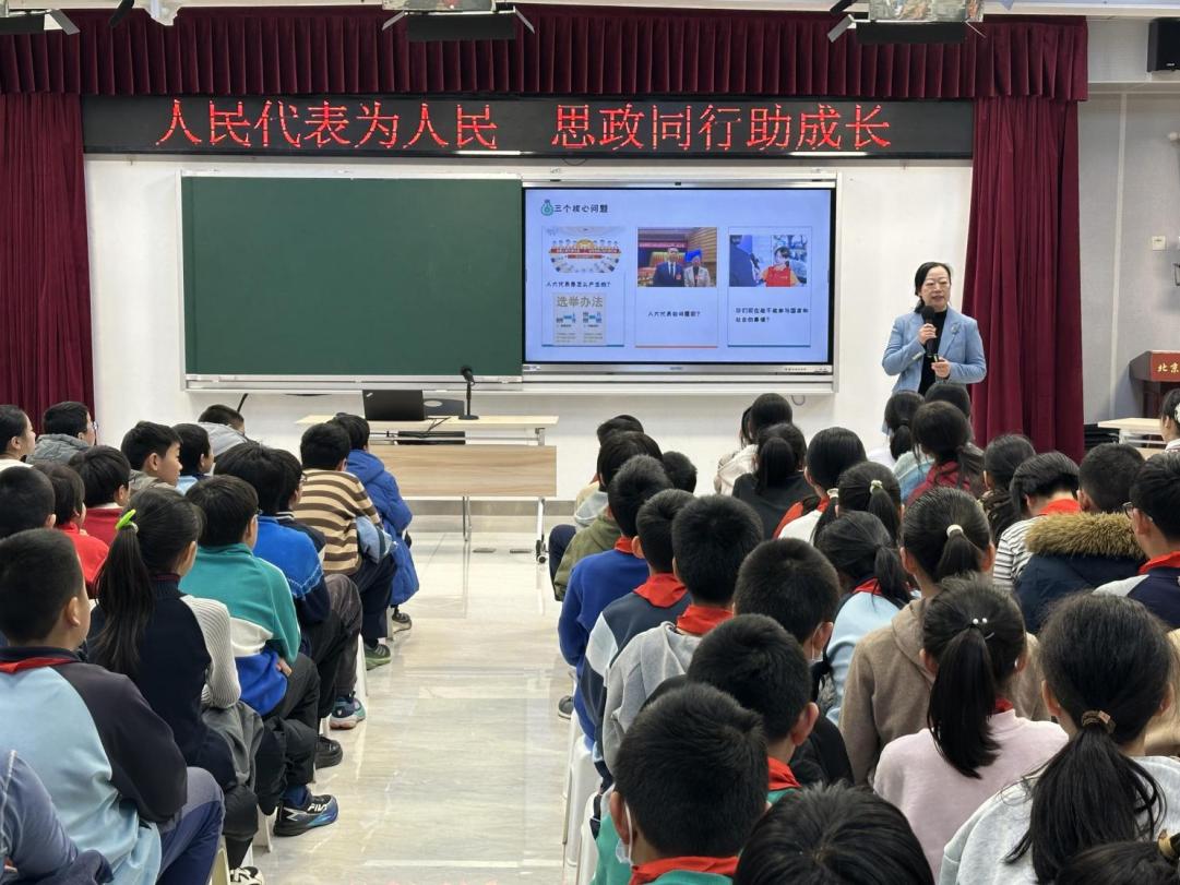建大附小前期的思政“小课堂”积淀深厚。在附属小学六年级《道德与法治》课上,主讲老师以别开生面的“模拟人大代表”的实践活动早已上演,活动紧扣教材中“人大代表为人民”的核心知识点,引导学生们走出课本,以“小代表”的视角观察社会并提出“小建议”。