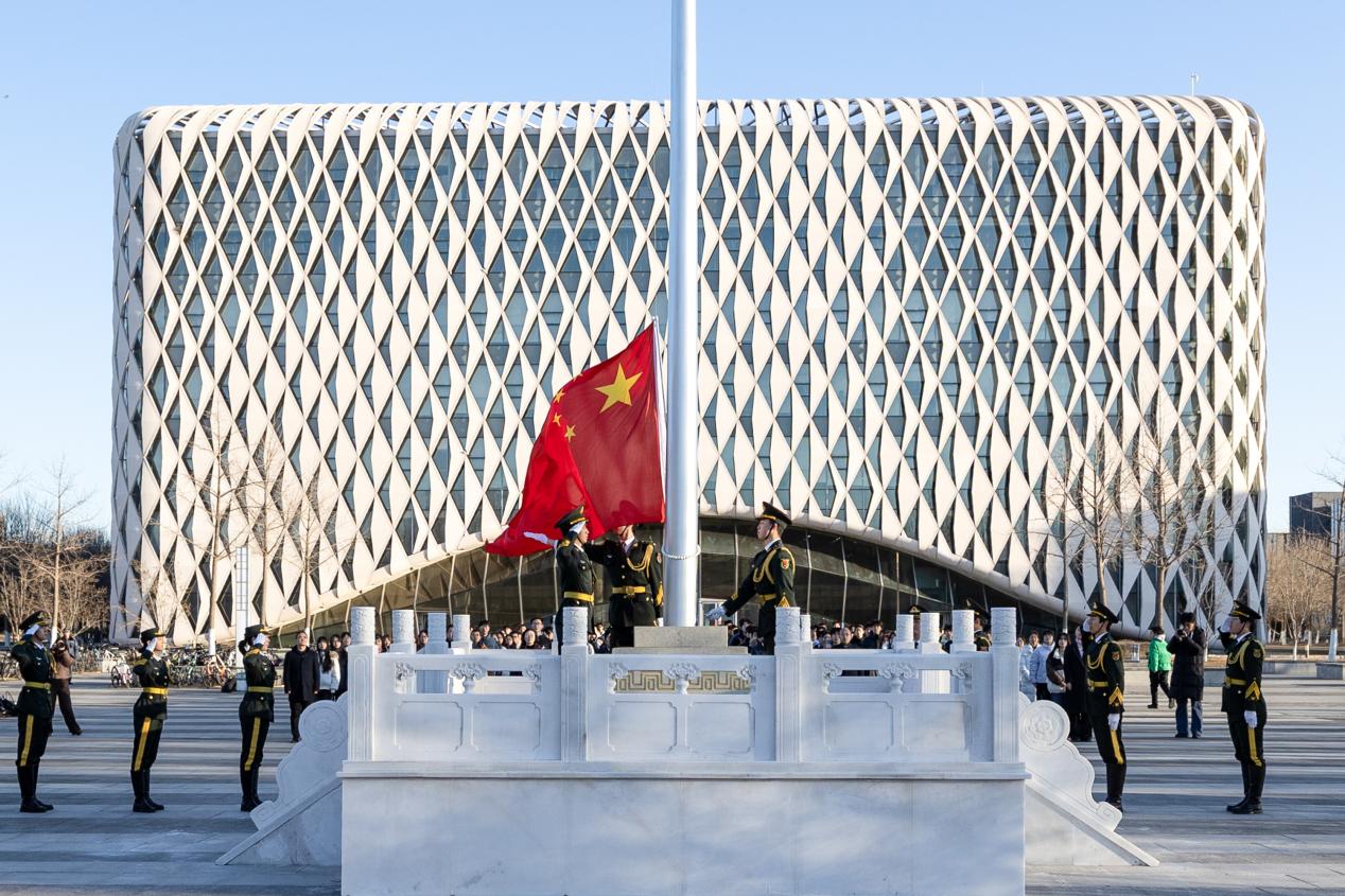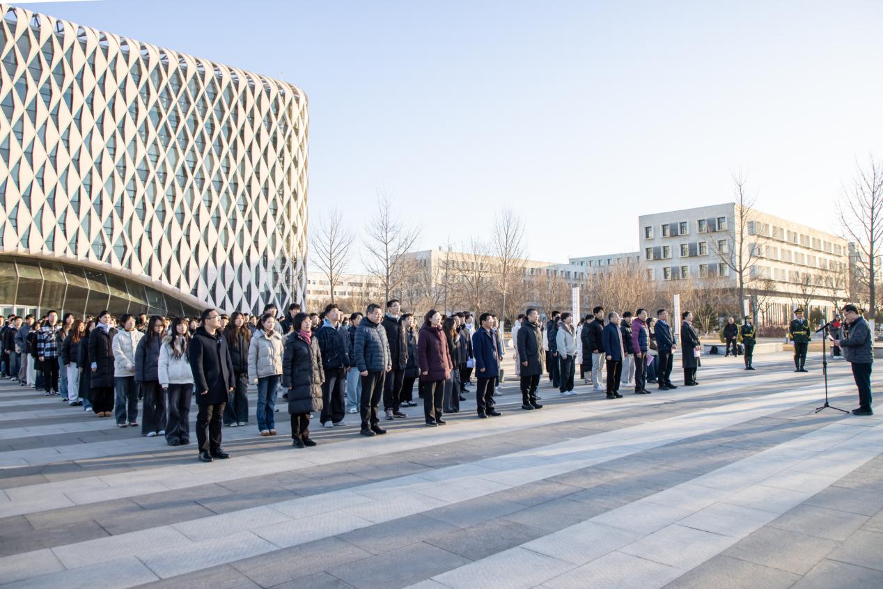 3月9日早晨7时30分,新学期开学第一天,学校在大兴校区图书馆南广场隆重举行升国旗仪式暨“国旗下的讲话”活动。曾亮相2025年中国人民抗日战争暨世界反法西斯战争胜利80周年纪念大会的九三阅兵广场旗杆在我校正式启用,成为校园中承载民族记忆、厚植家国情怀的崭新精神地标。党委书记王攀,党委副书记王爱军,党委常委、宣传部部长魏楚元,党政办、宣传部、教工部、学工部、保卫处、校团委负责人,各学院党委副书记、团委书记及师生代表共计两百余人参加活动。活动由王爱军主持。
