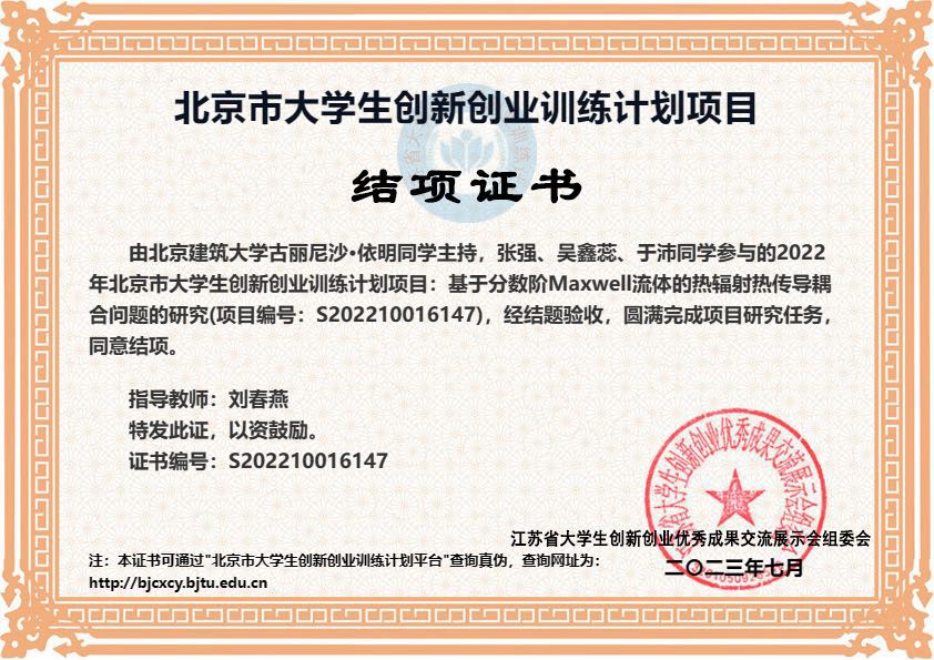 部分结项证书