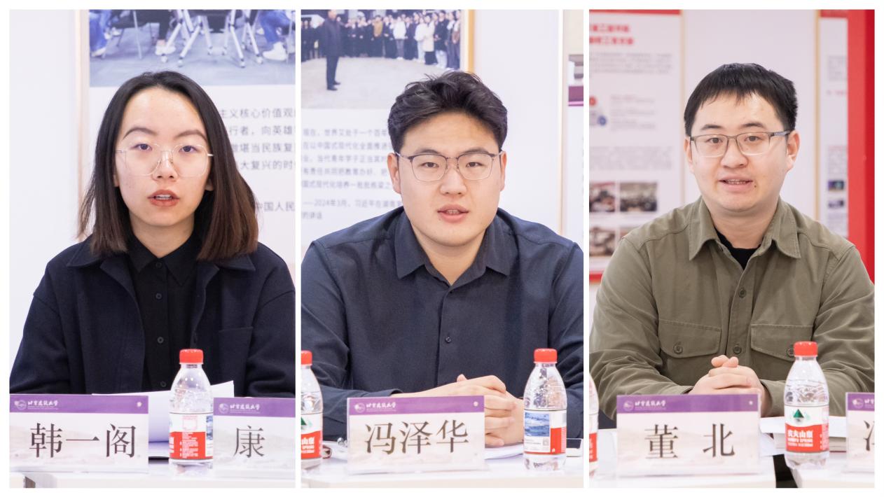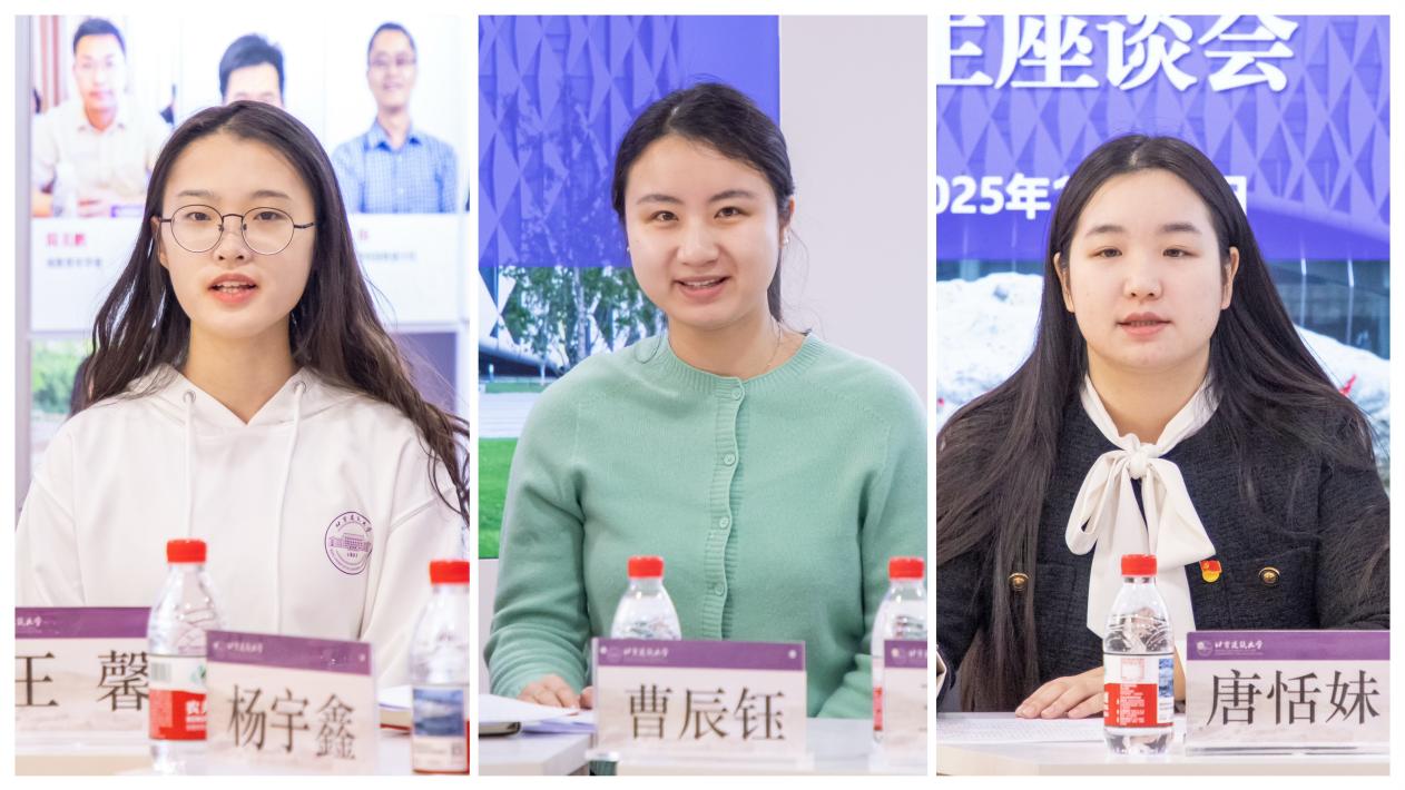 座谈会上,来自各学院的学生代表依次发言。未来院本科生韩一阁分享了所在科创团队利用增强现实、虚拟漫游等展示手段让人们“沉浸式”走进中国古塔建筑的创新突破;建筑学院硕士研究生冯泽华讲述了在纪念中国人民抗日战争暨世界反法西斯战争胜利80周年大会服务保障过程中,用专业绘制志愿者口袋书图纸的难忘经历;土木学院硕士研究生董北通过真实工作案例,分享了自己从学生到辅导员再到学生的身份蜕变与责任坚守。