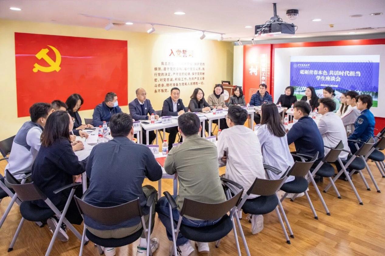 12月26日,学校召开“砥砺青春本色 共话时代担当”学生座谈会,党委书记王攀与各学院学生代表开展座谈交流,了解学生在校学习生活中的真切感受、实际需求,听取对学校事业发展的意见建议。党委常委、副校长朱静参加座谈。